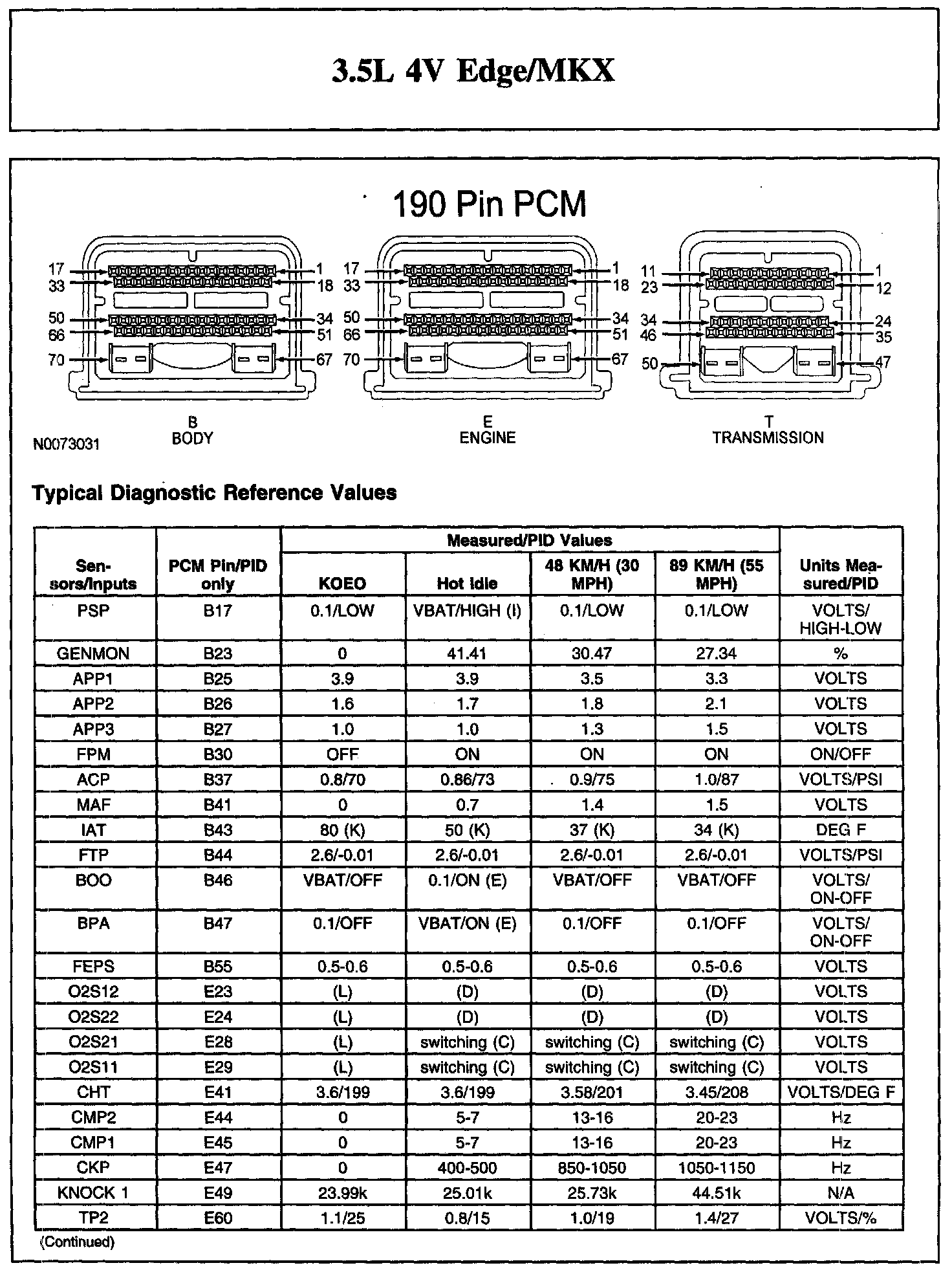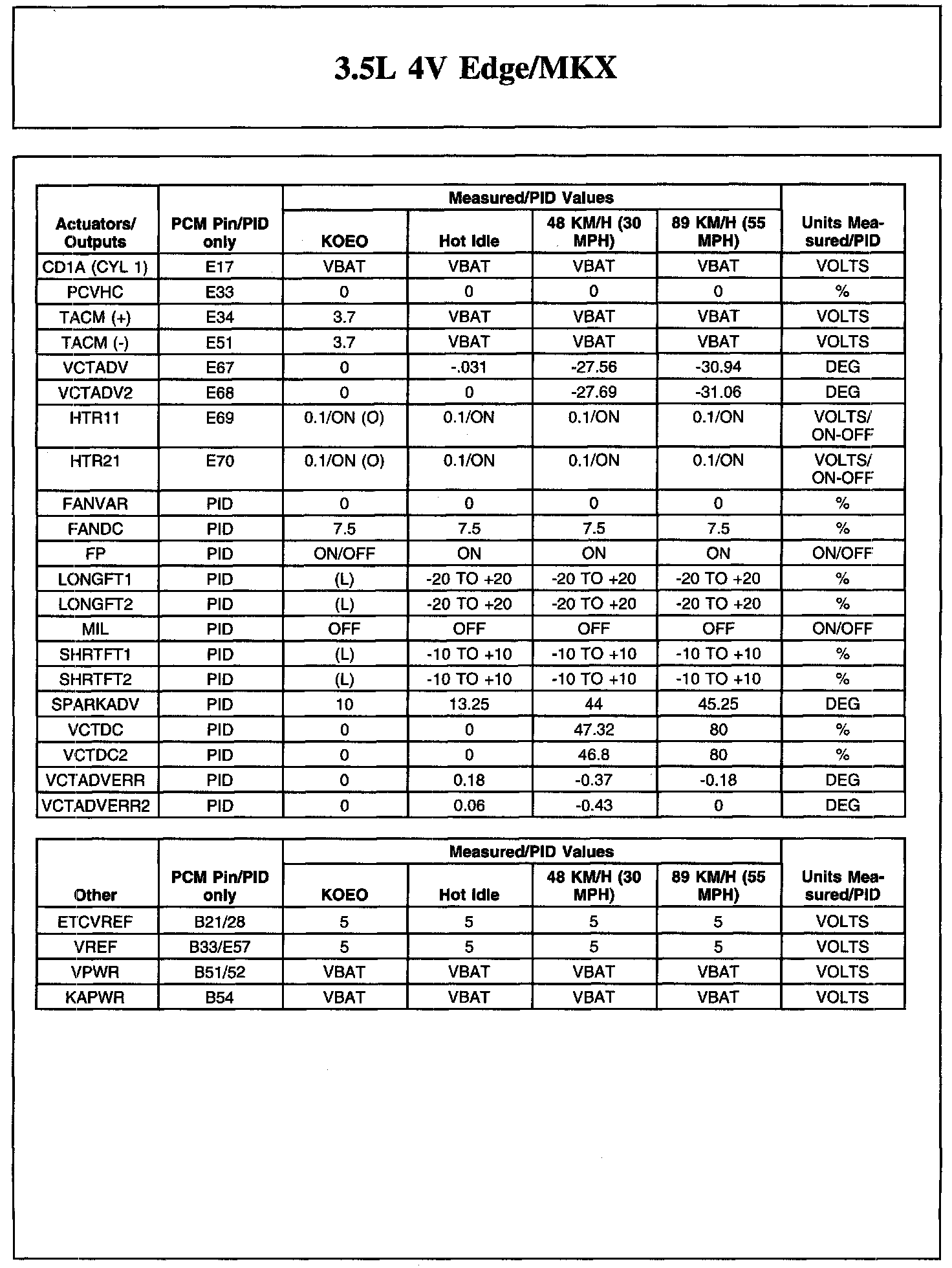 The Typical Diagnostic Reference Value Charts do not display fault parameter identifications (PIDs). These are PIDs which indicate a hard fault with the circuit. They display a value of YES or NO and are PIDs ending with the letter F.