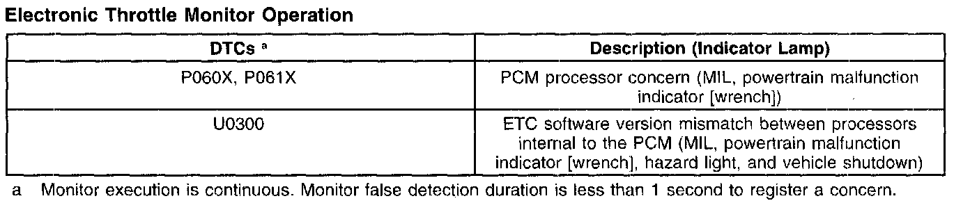 The ETC monitor system is distributed across two processors within the PCM: the main powertrain control processor unit (CPU) and a separate monitoring processor. The primary monitoring function is carried out by the independent plausibility check (IPC) software, which resides on the main processor. It is responsible for determining the driver-demanded torque and comparing it to an estimate of the actual torque delivered. If the generated torque exceeds driver demand by a specified amount, appropriate corrective action is taken.