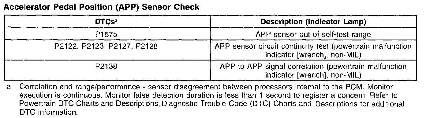 Accelerator Pedal Position (APP) Sensor Check: