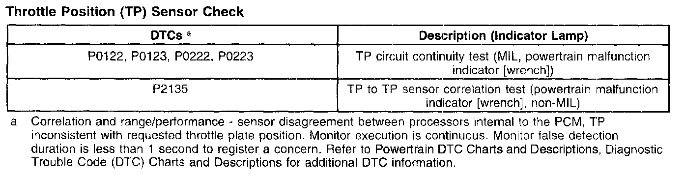 Throttle Position (TP) Sensor Check: