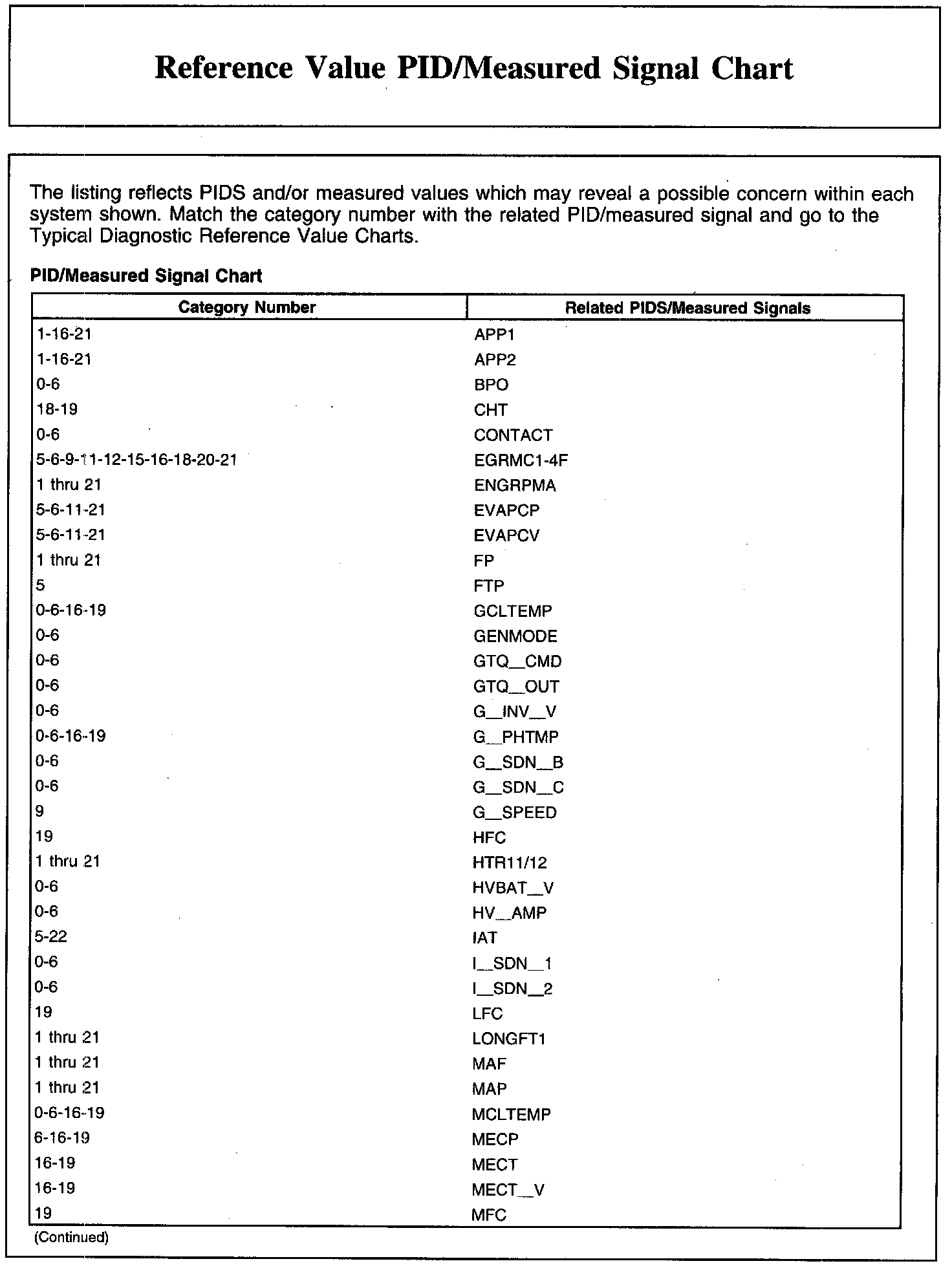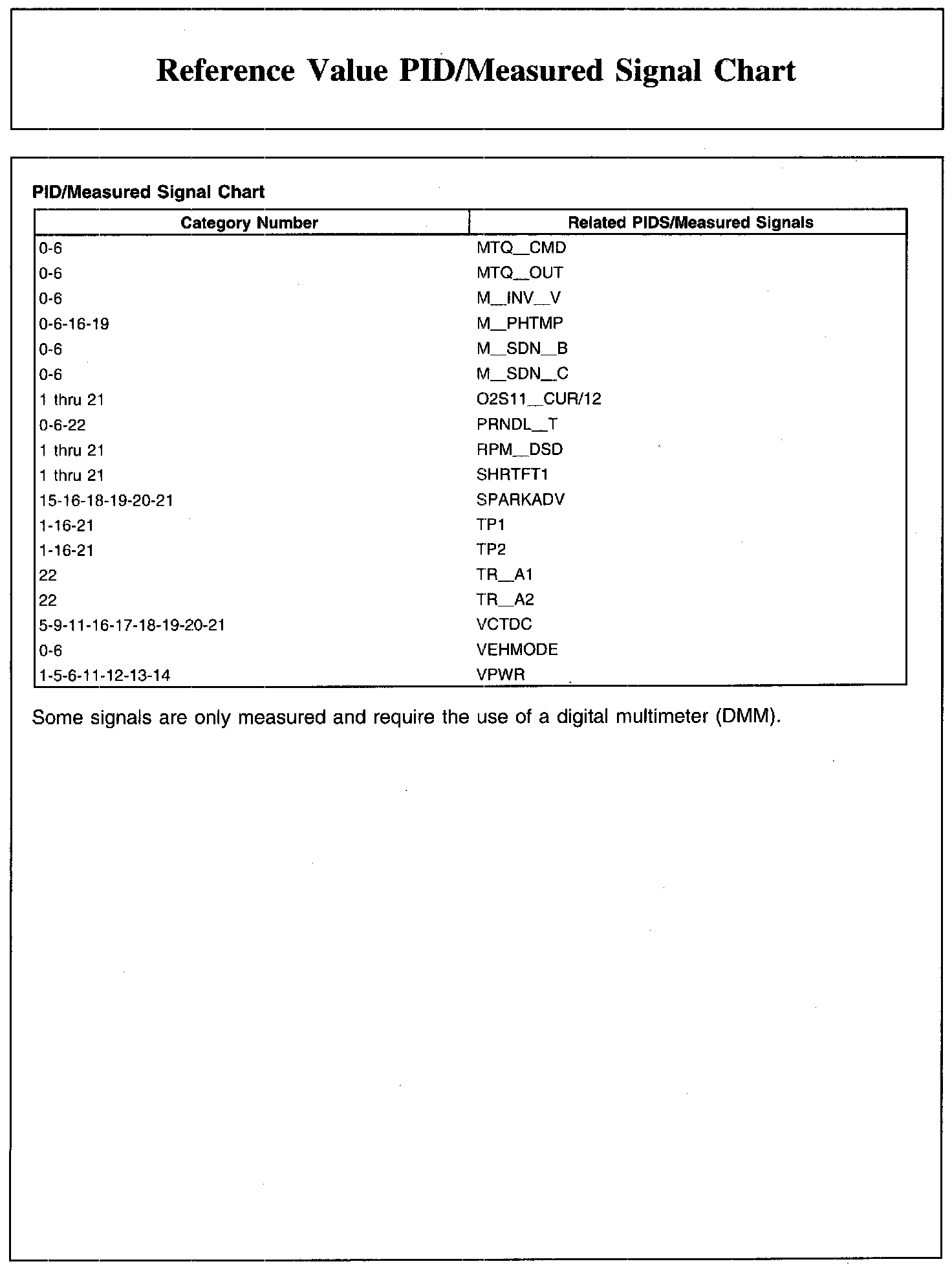 REFERENCE VALUE PID/MEASURED SIGNAL CHART