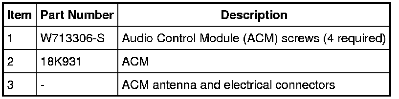 Home >> Ford >> 2010 >> Escape 2WD L4-2.5L >> Repair and Diagnosis >> Accessories and Optional Equipment >> Cellular Phone >> Communications Control Module >> Service and Repair >> Removal and Replacement >> Audio Control Module (ACM)