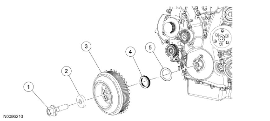 Lower End Components - Exploded View, Crankshaft Pulley and Crankshaft Front Seal