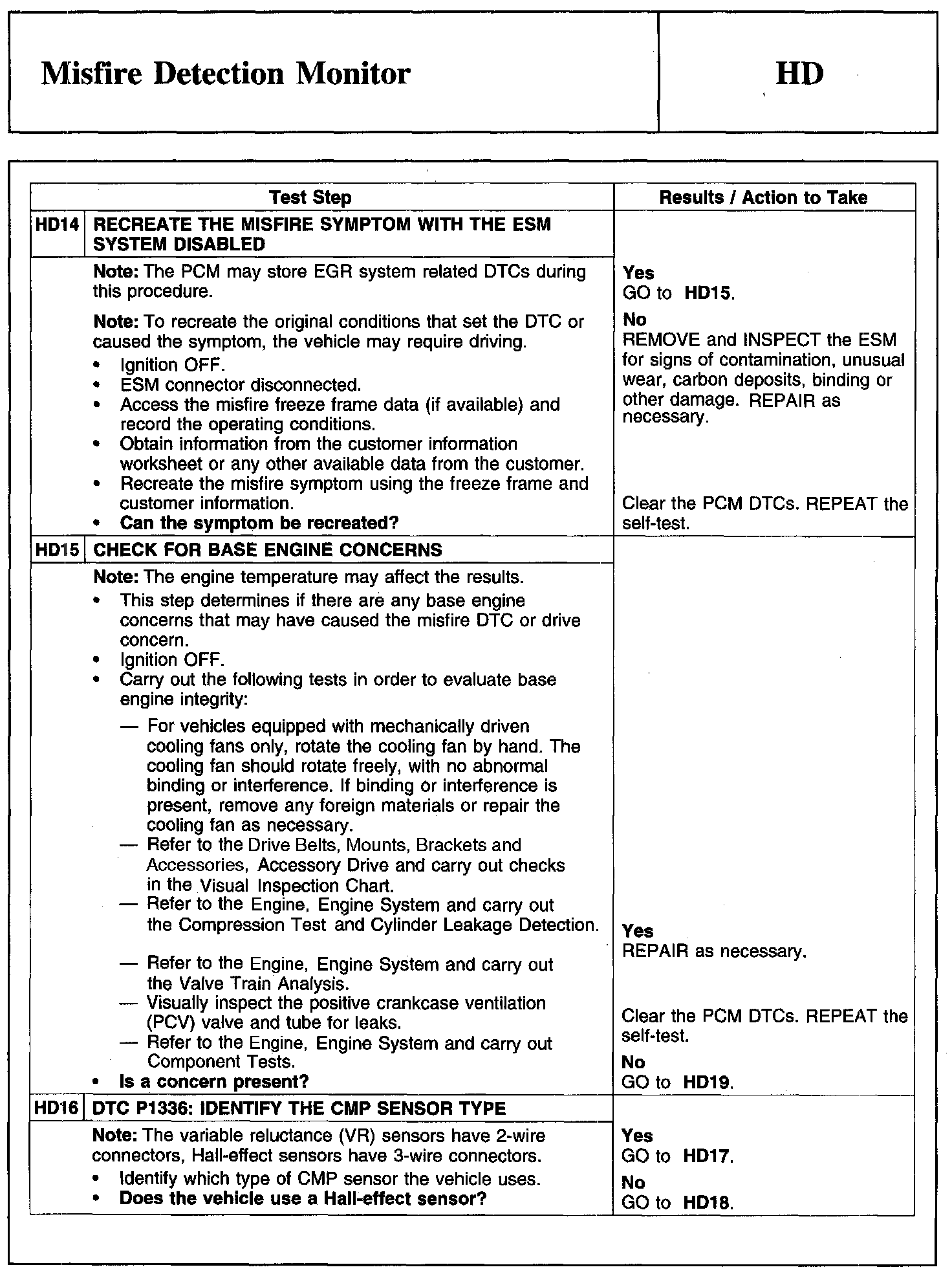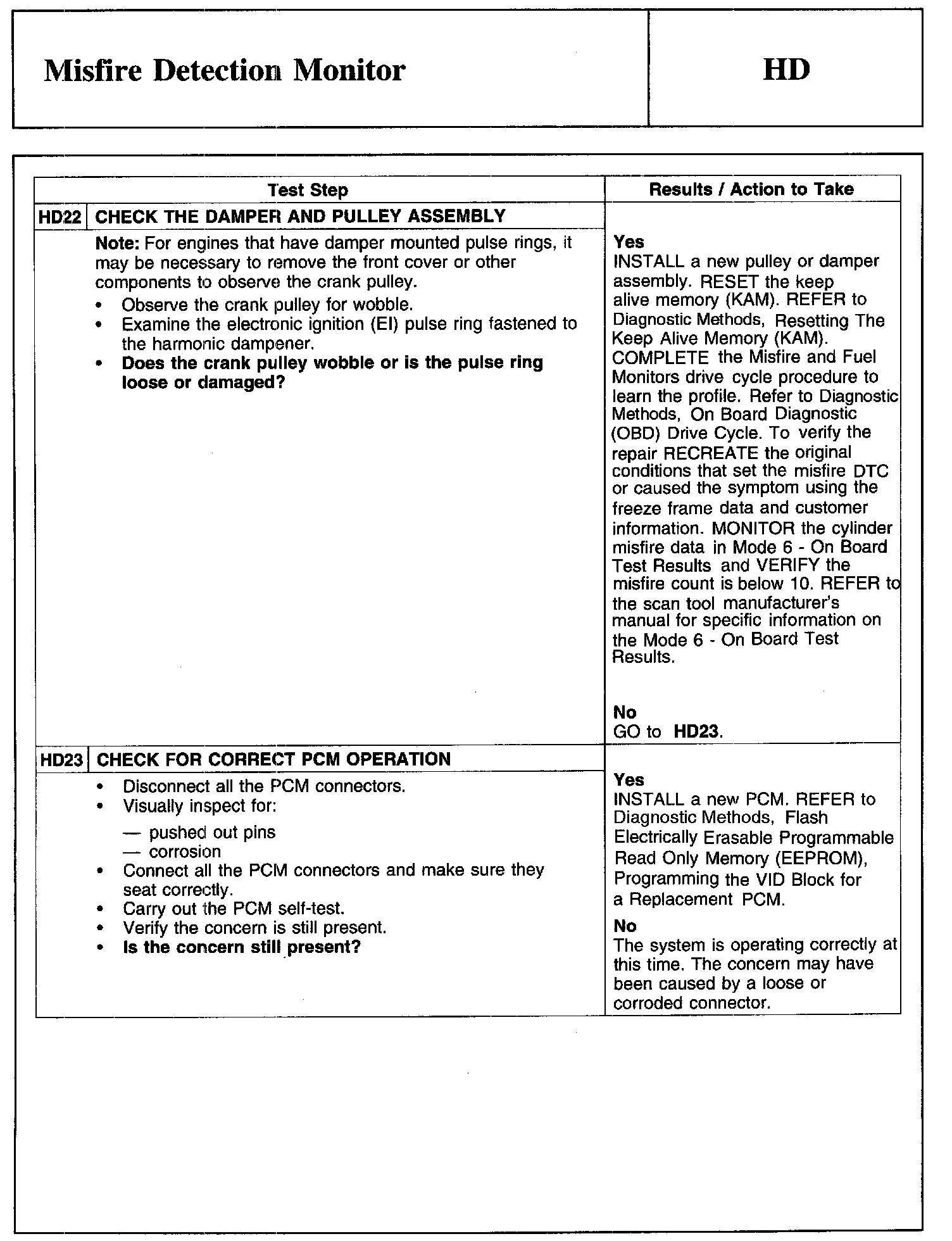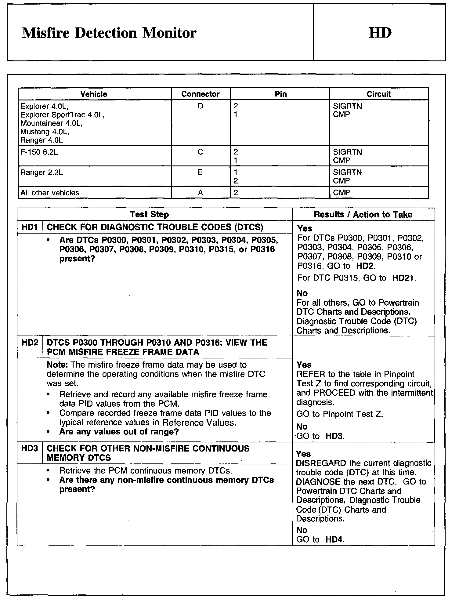 Home >> Ford >> 2010 >> Escape 2WD L4-2.5L >> Repair and Diagnosis >> Powertrain Management >> Computers and Control Systems >> Testing and Inspection >> Pinpoint Tests >> Test HD: Misfire Detection Monitor