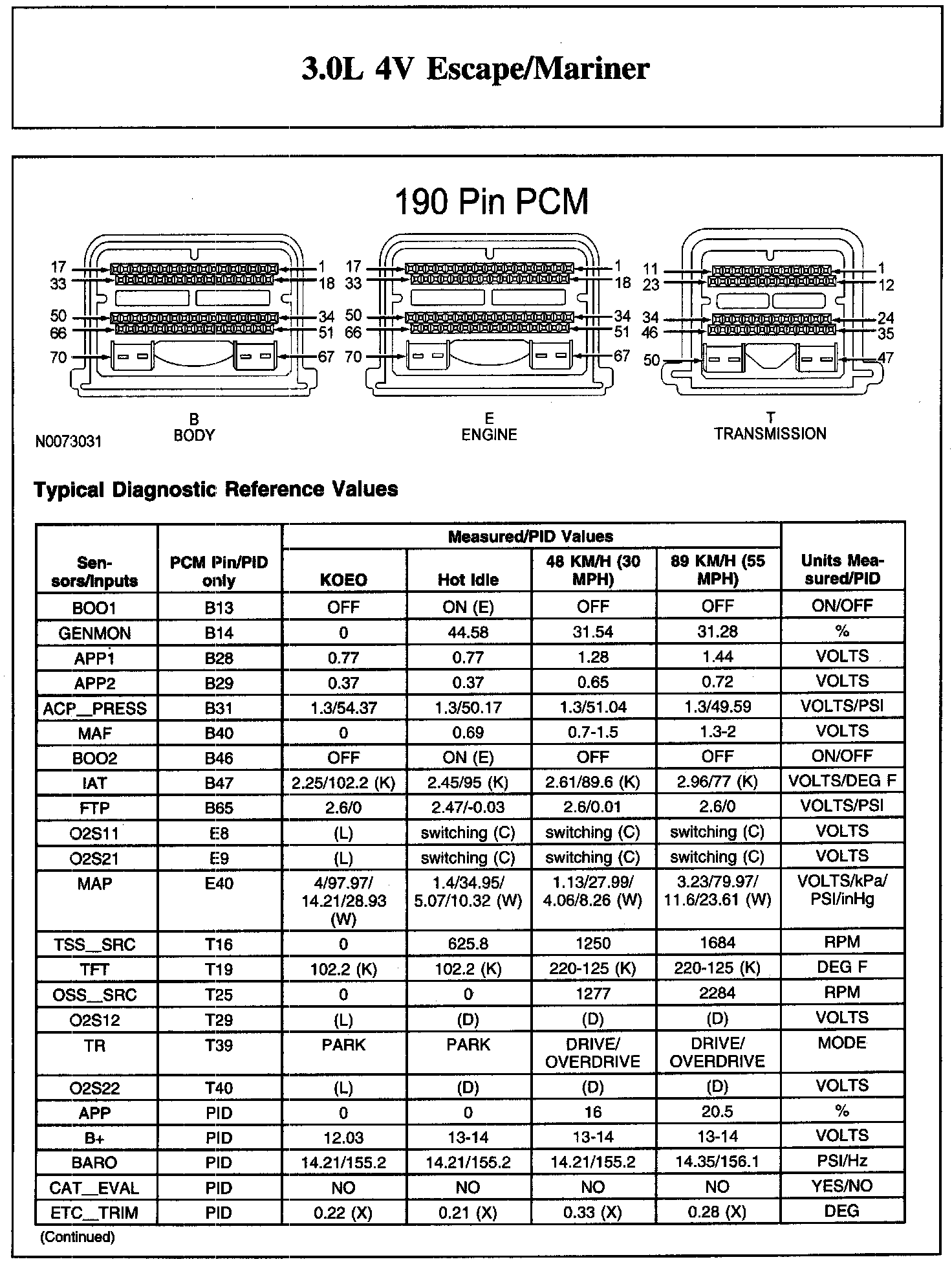 The Typical Diagnostic Reference Value Charts do not display fault parameter identifications (PIDs). These are PIDs which indicate a hard fault with the circuit. They display a value of YES or NO and are PIDs ending with the letter F.