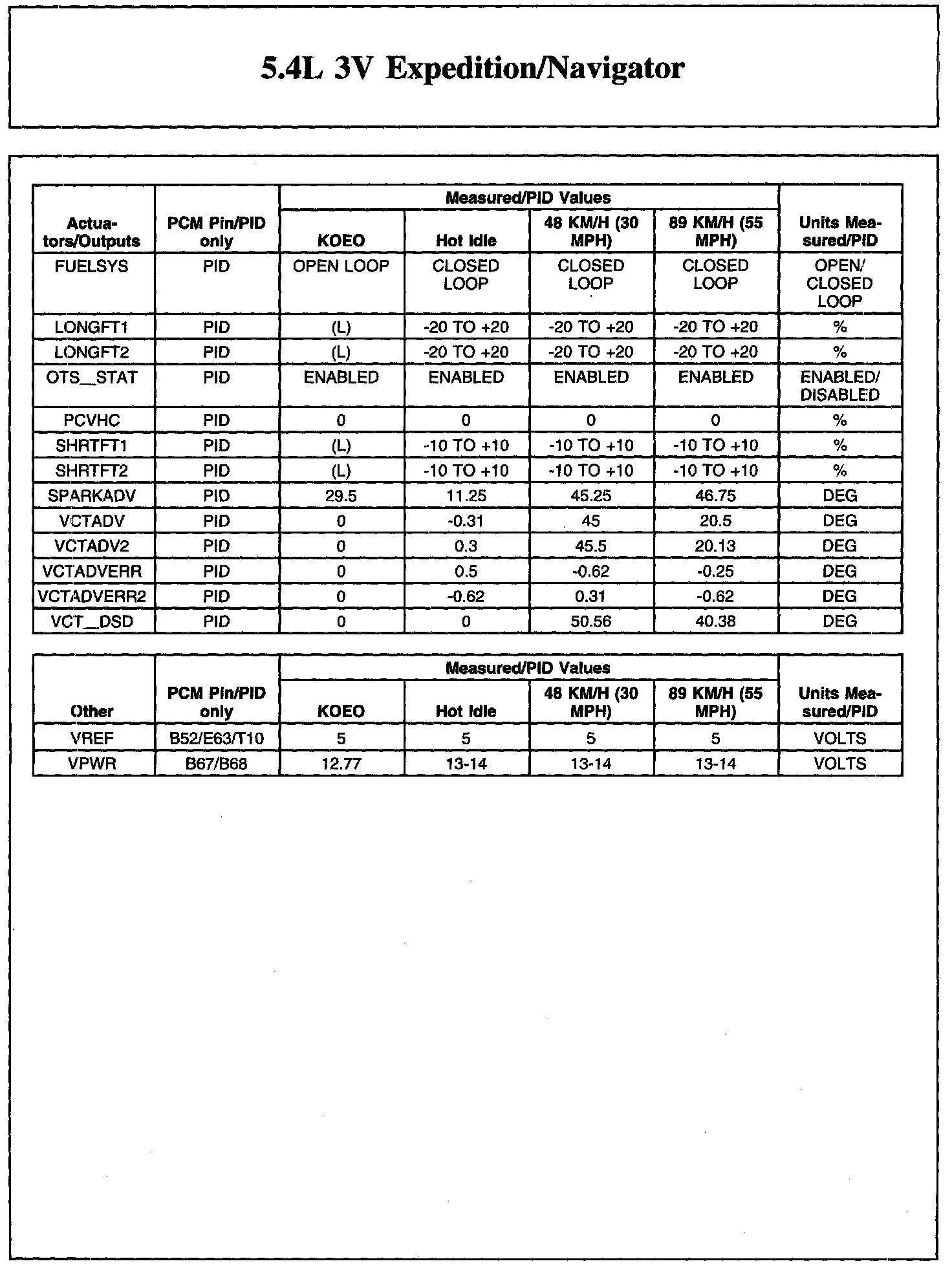 Home >> Ford >> 2010 >> Expedition 2WD V8-5.4L >> Repair and Diagnosis >> Powertrain Management >> Computers and Control Systems >> Testing and Inspection >> Scan Tool Testing and Procedures >> Typical Diagnostic Reference Values