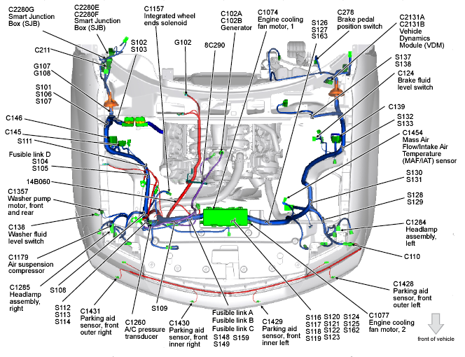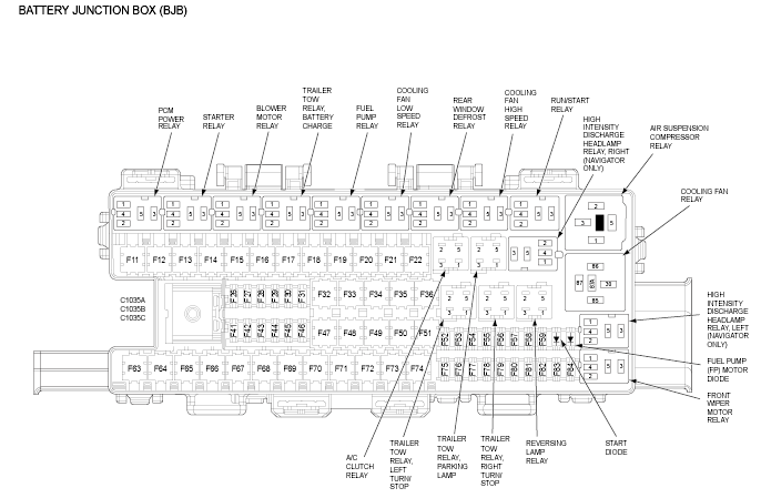 Battery Junction Box (BJB) (Navigator) Center front of engine compartment. See Figure.