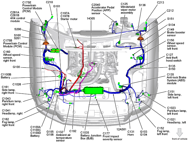 Battery Junction Box (BJB) (Expedition) Center front of engine compartment. See Figure.