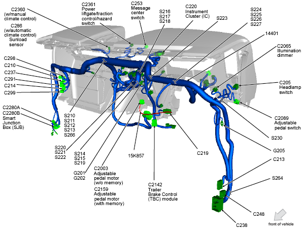 Smart Junction Box (SJB) (Expedition) Behind right kick panel. See Figure.