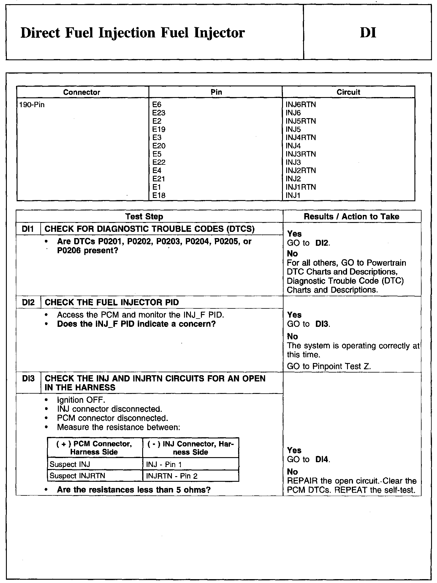 PINPOINT TEST DI: DIRECT FUEL INJECTION