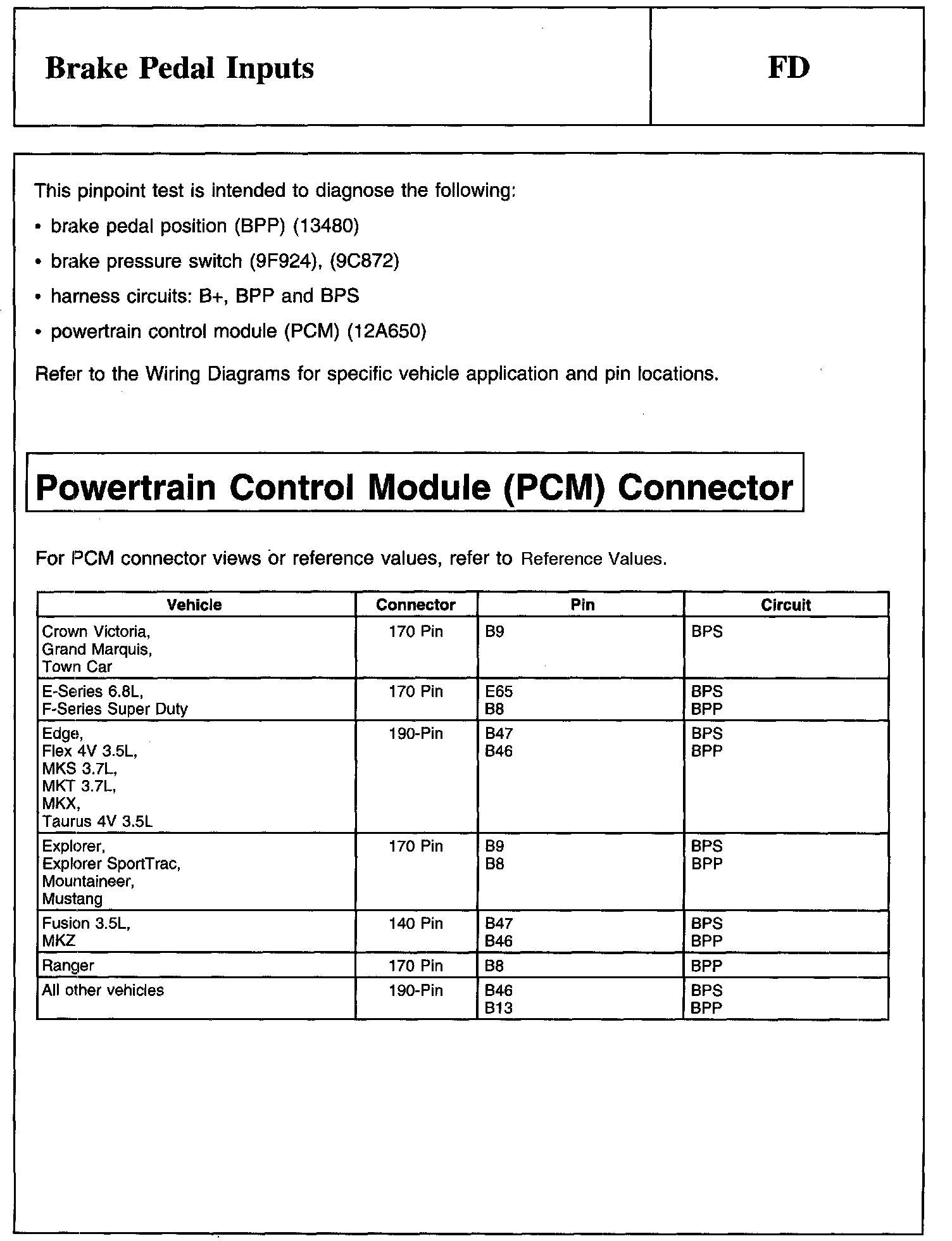 PINPOINT TEST FD: BRAKE PEDAL INPUTS