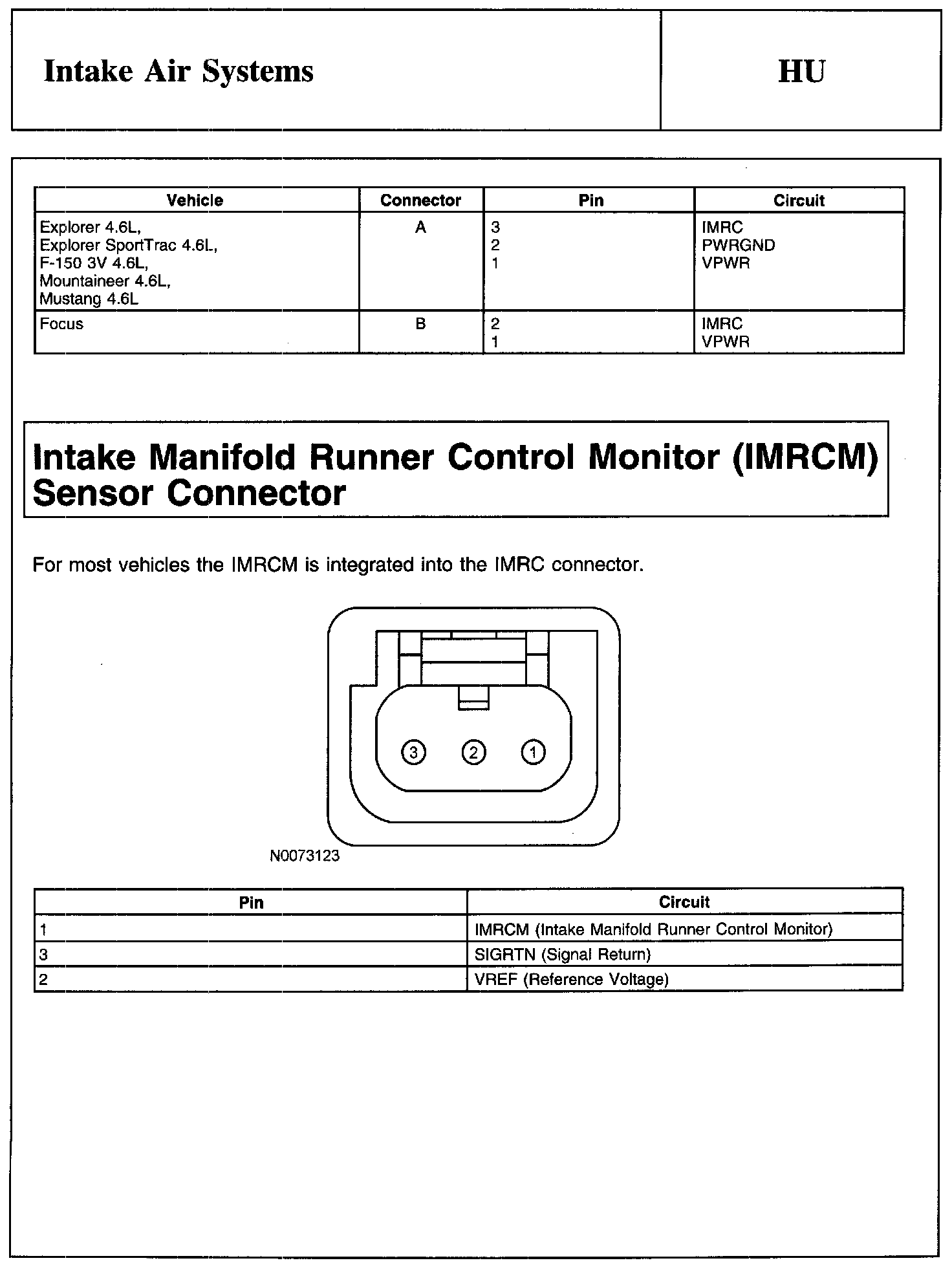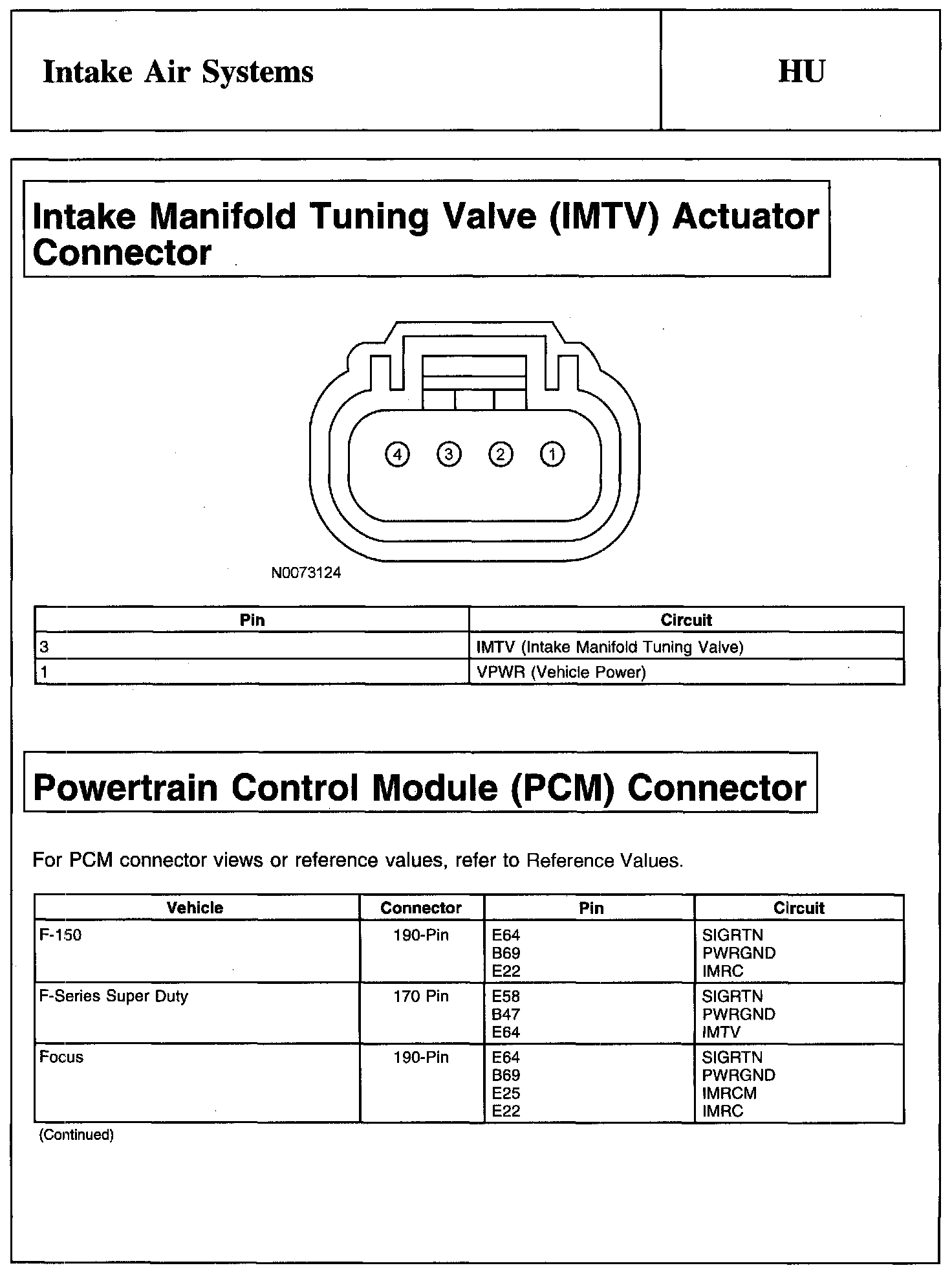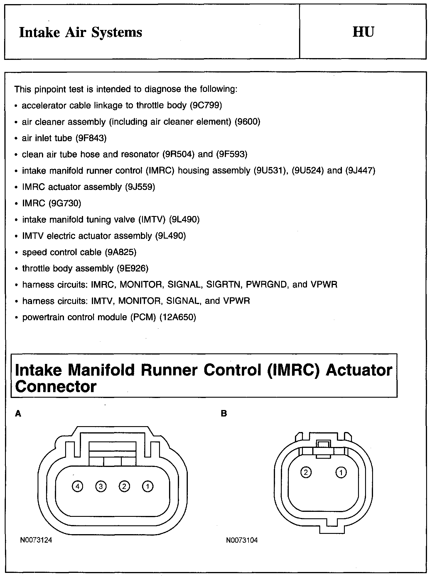 PINPOINT TEST HU: INTAKE AIR SYSTEMSIntake Manifold Runner Control (IMRC) Actuator Connector: