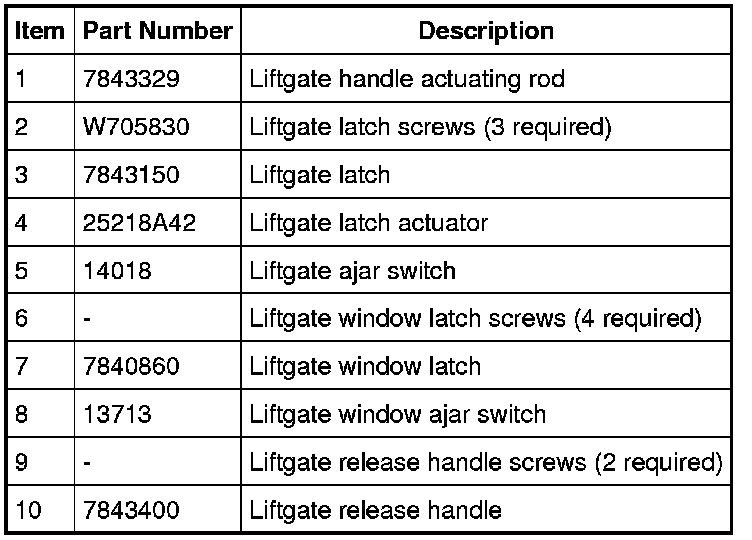 Liftgate Handle, Lock and Latch - Exploded View