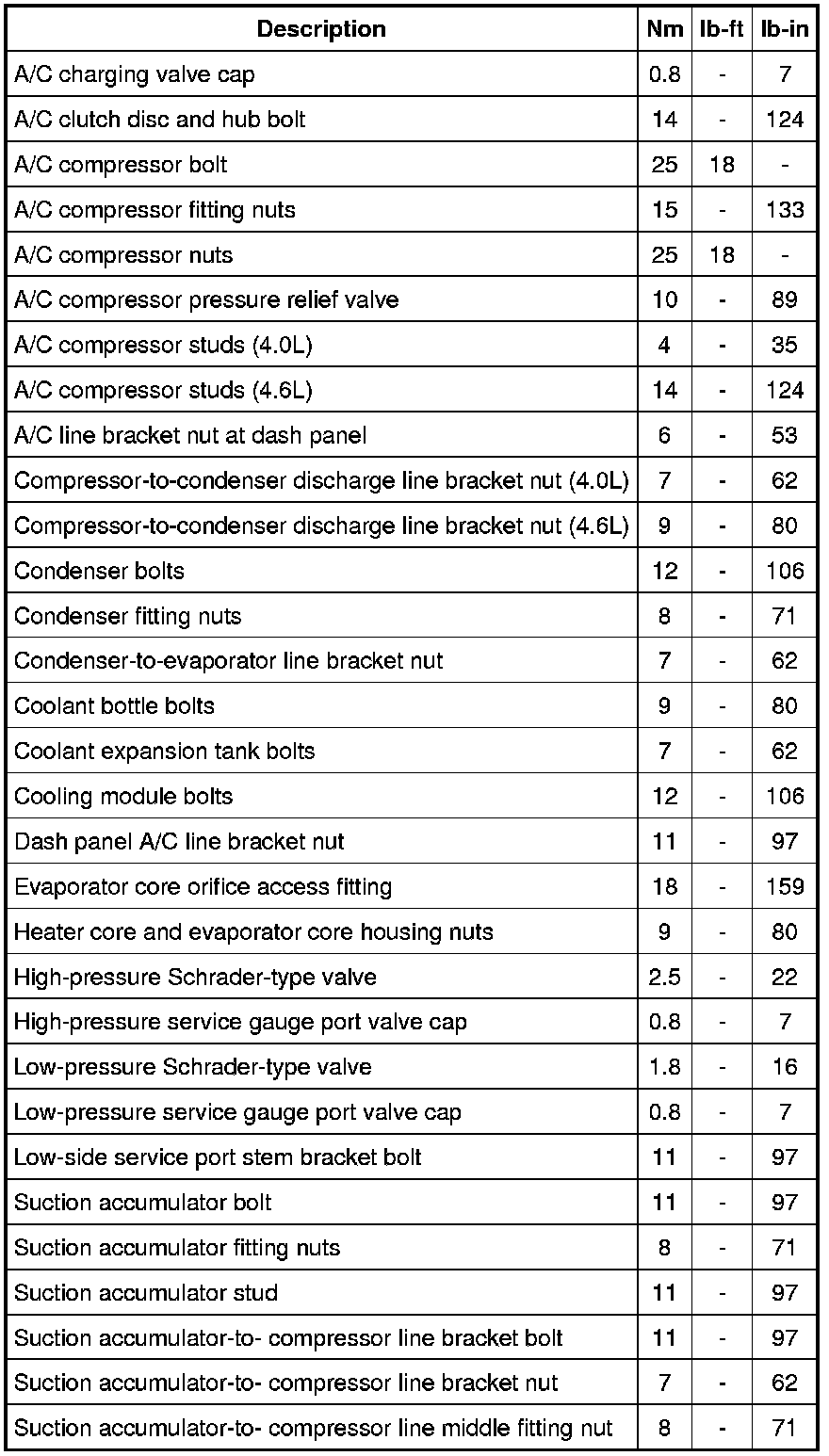 Torque Specifications