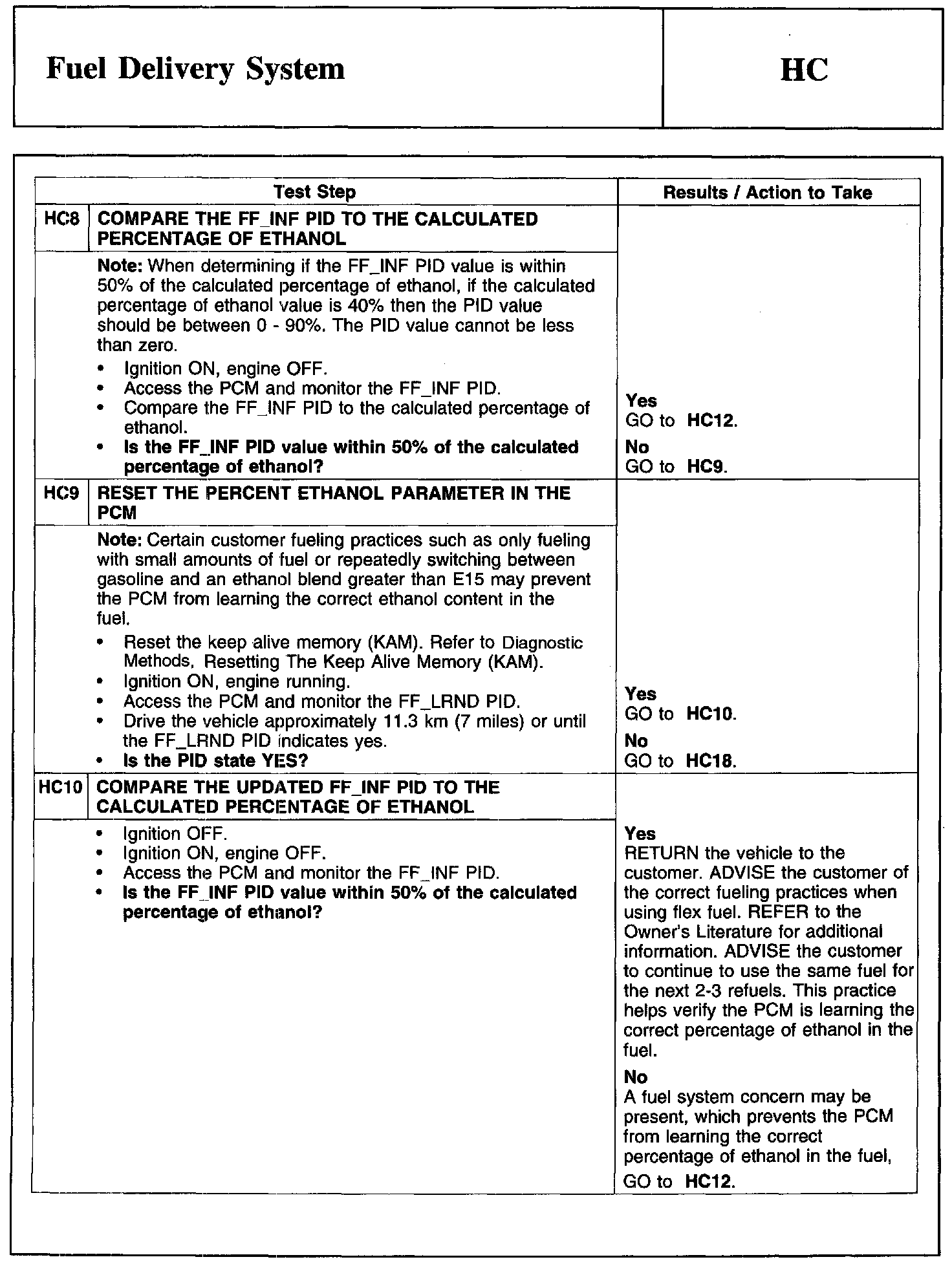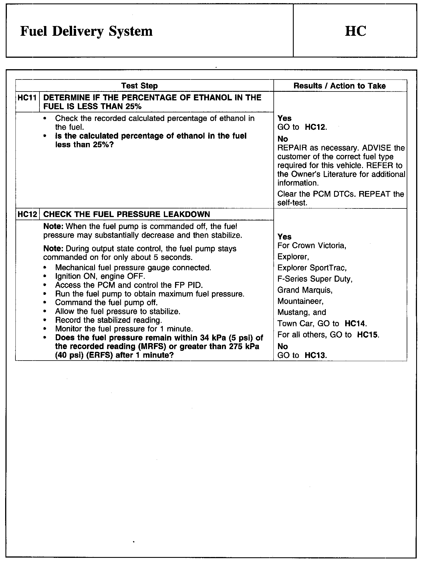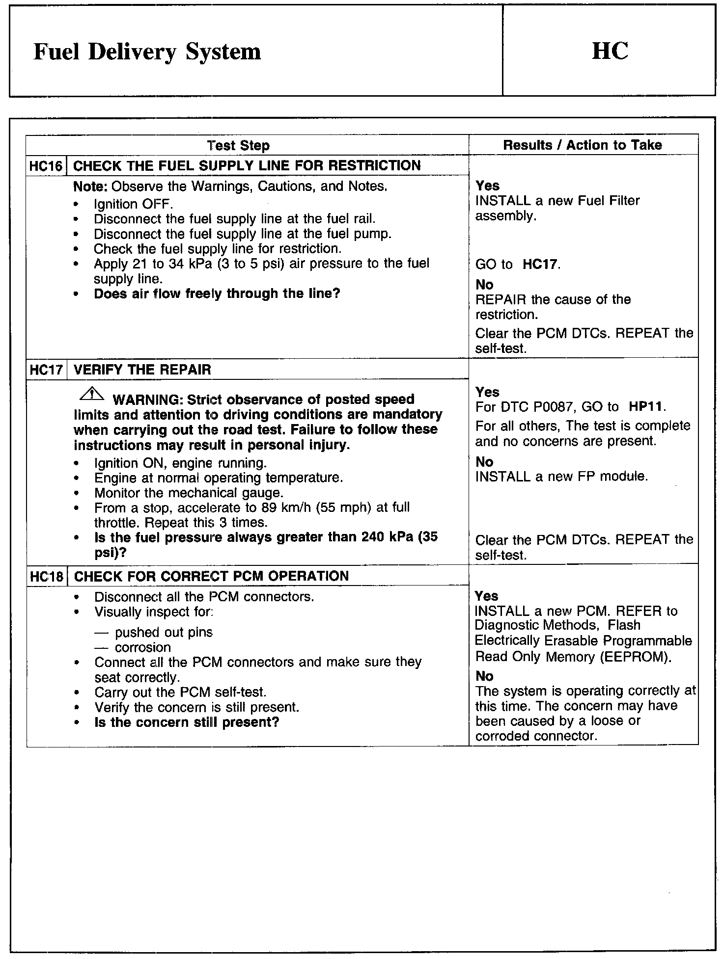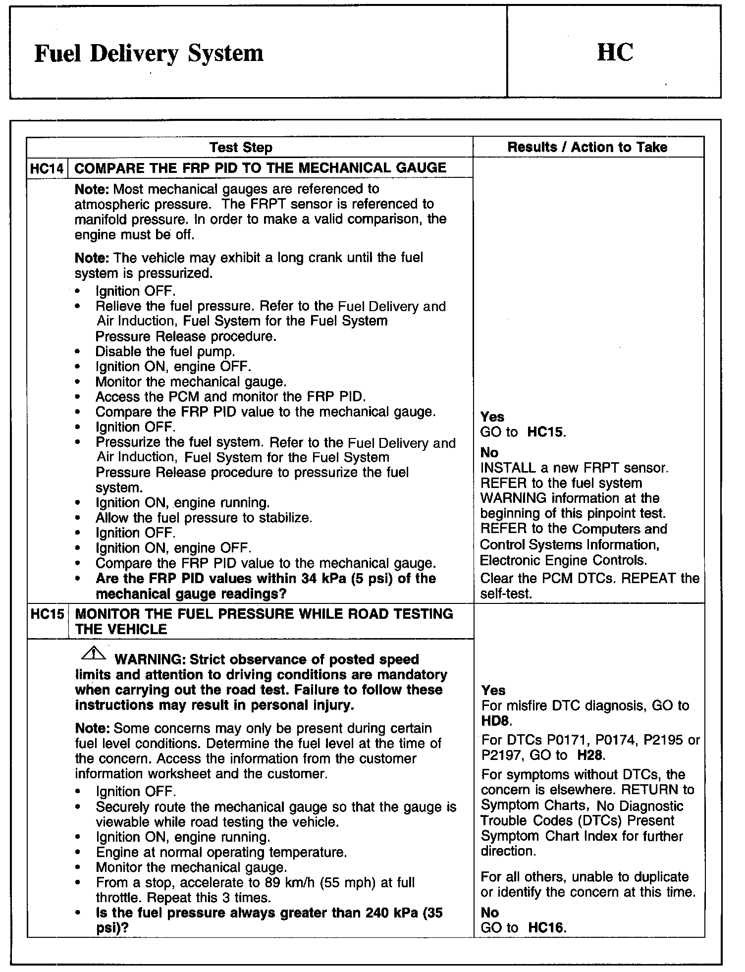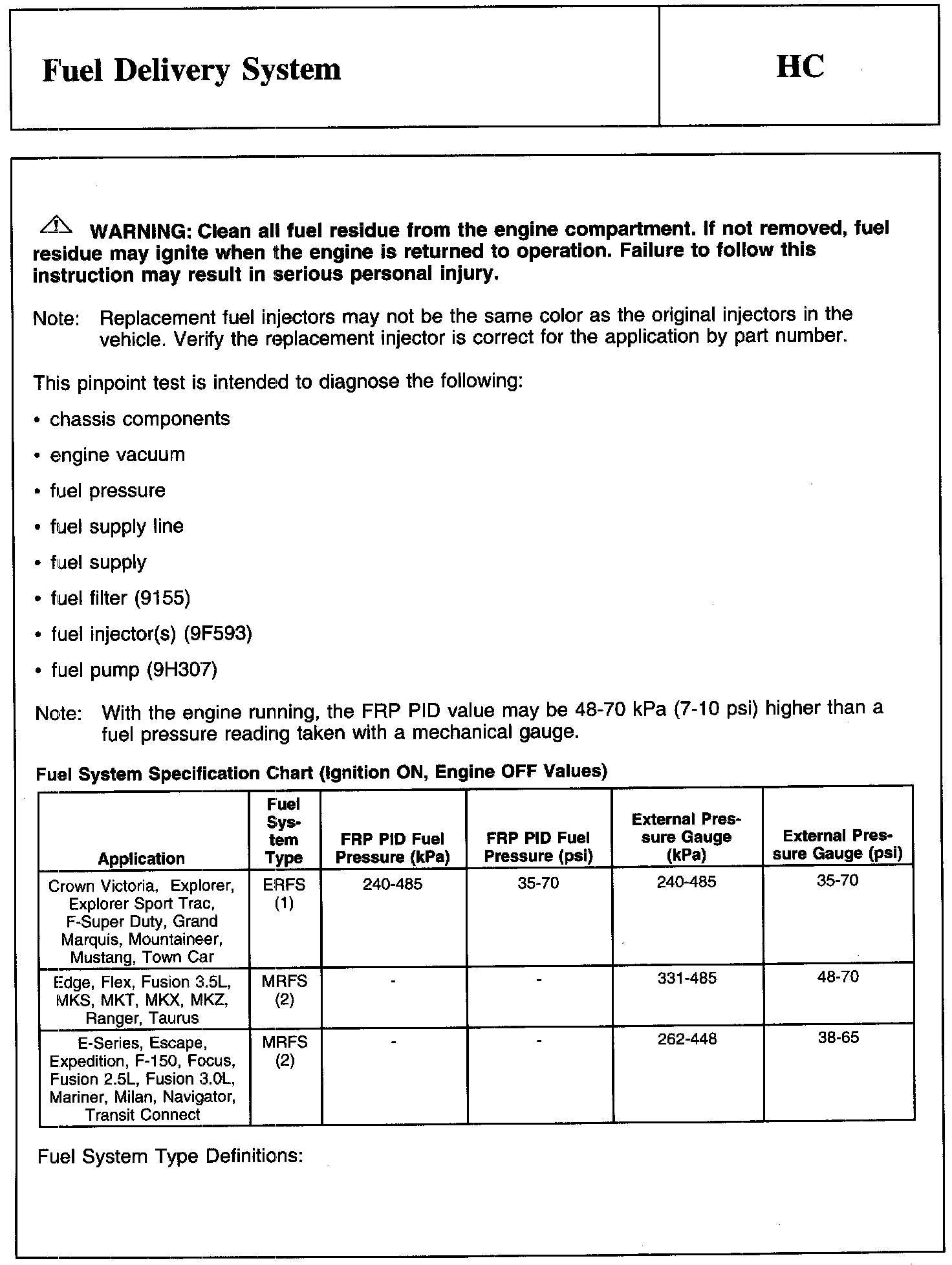 PINPOINT TEST HC: FUEL DELIVERY SYSTEMWarning: