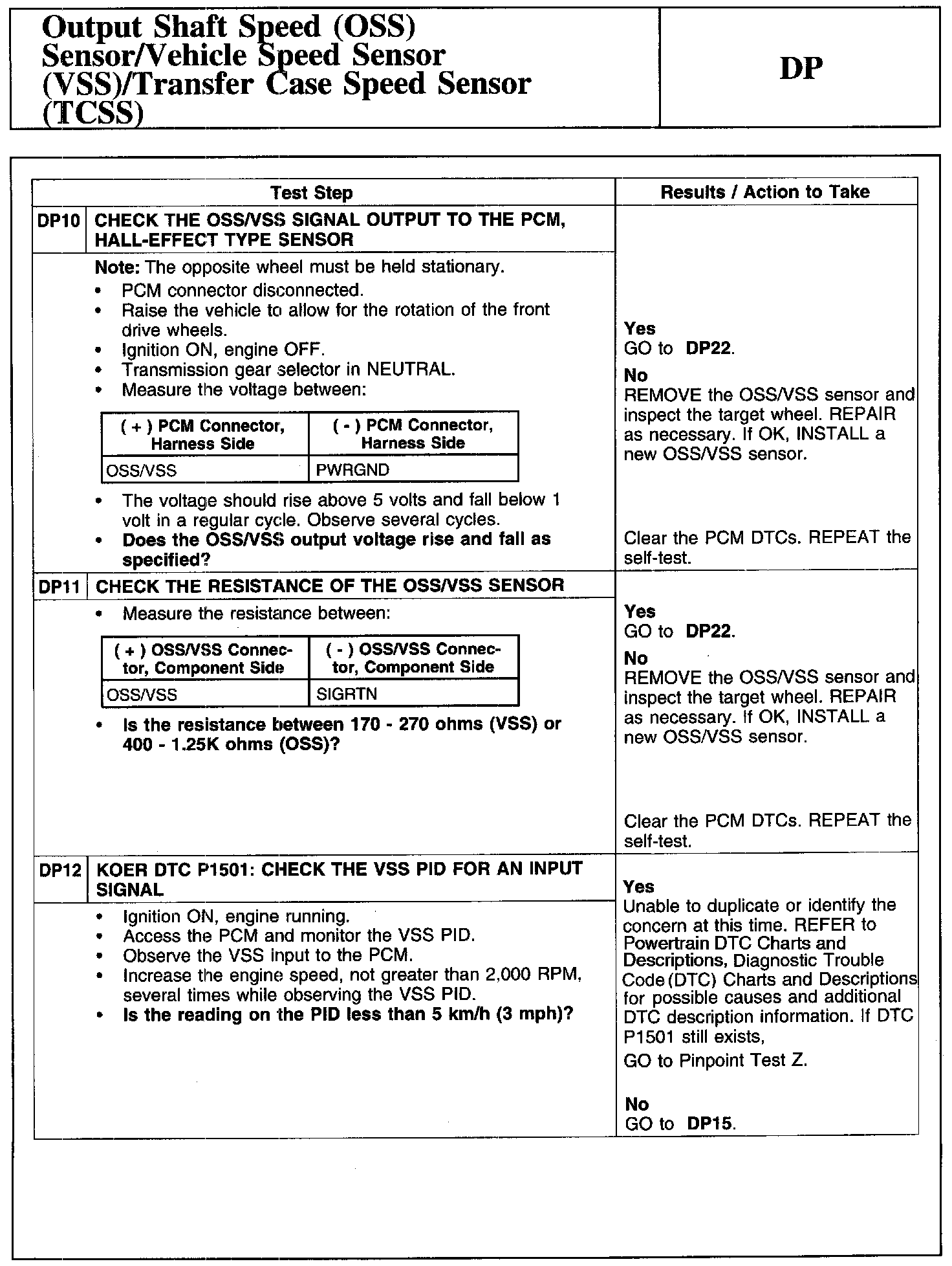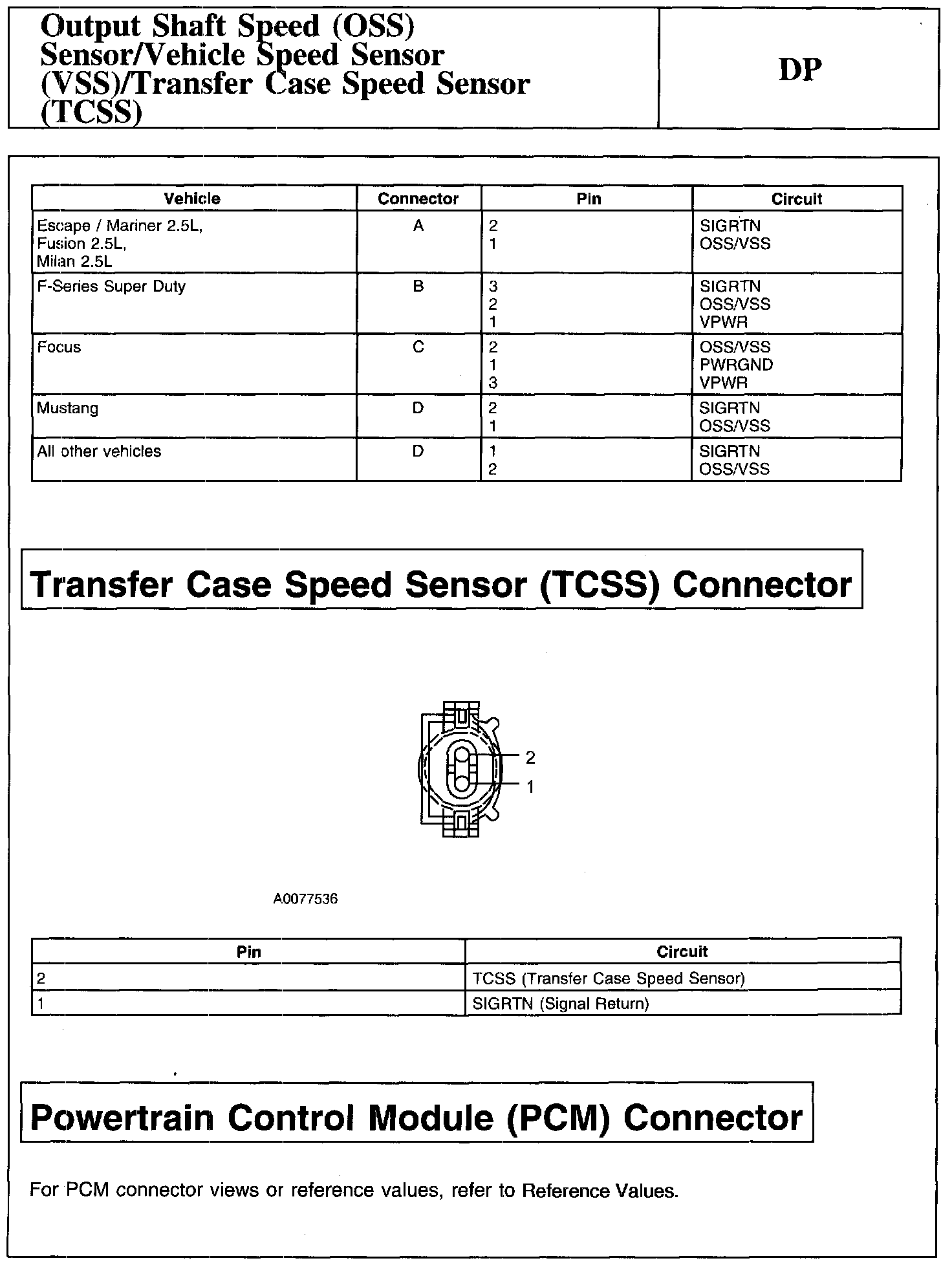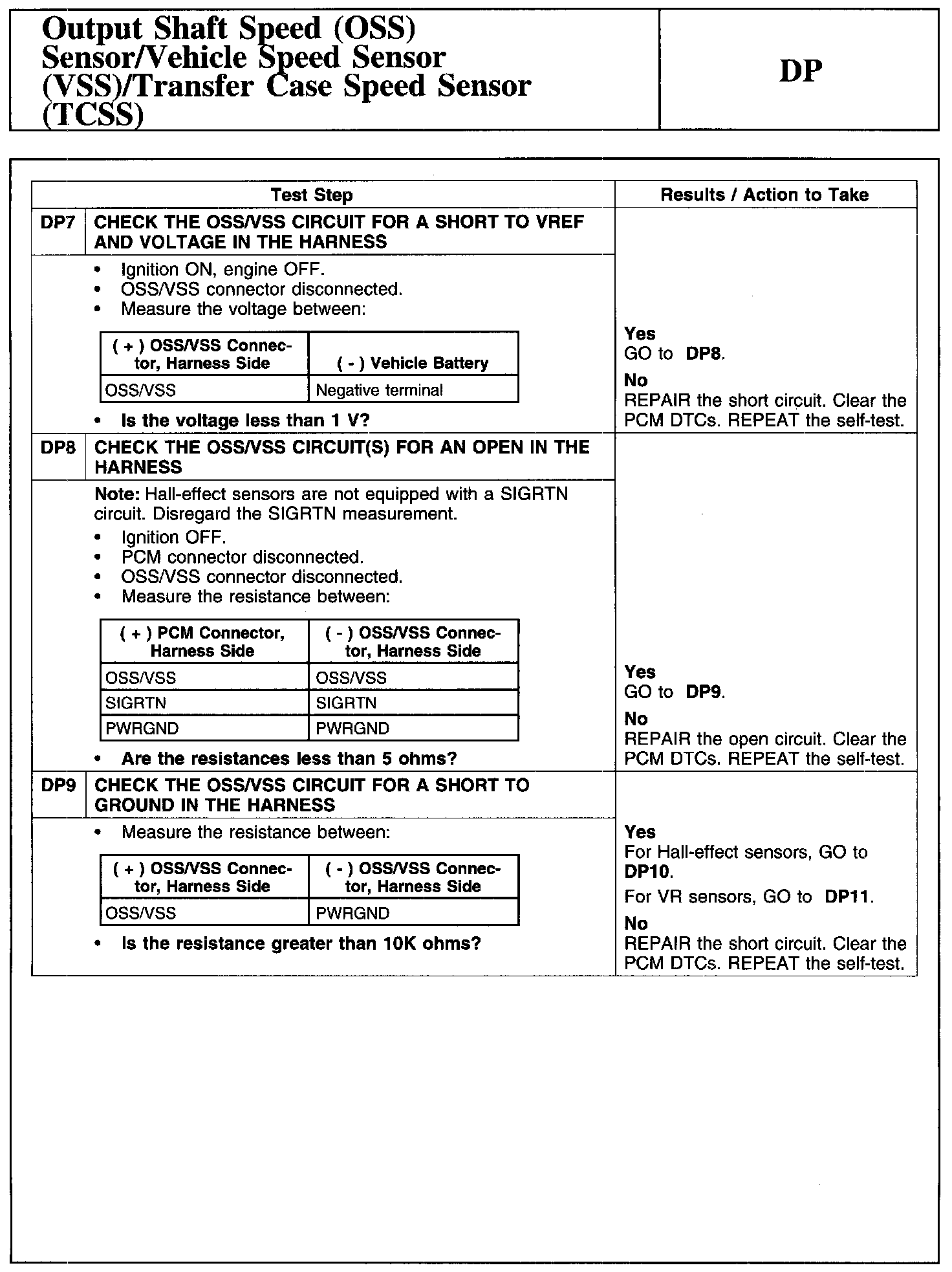 Test DP: Output Shaft Speed (OSS) Sensor/Vehicle Speed Sensor (VSS)/Transfer Case Speed Sensor (TCSS)