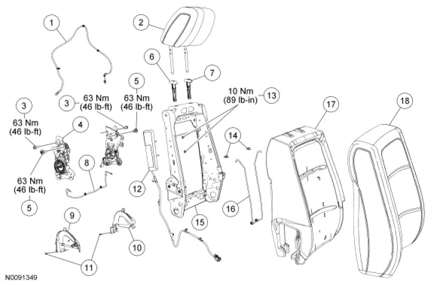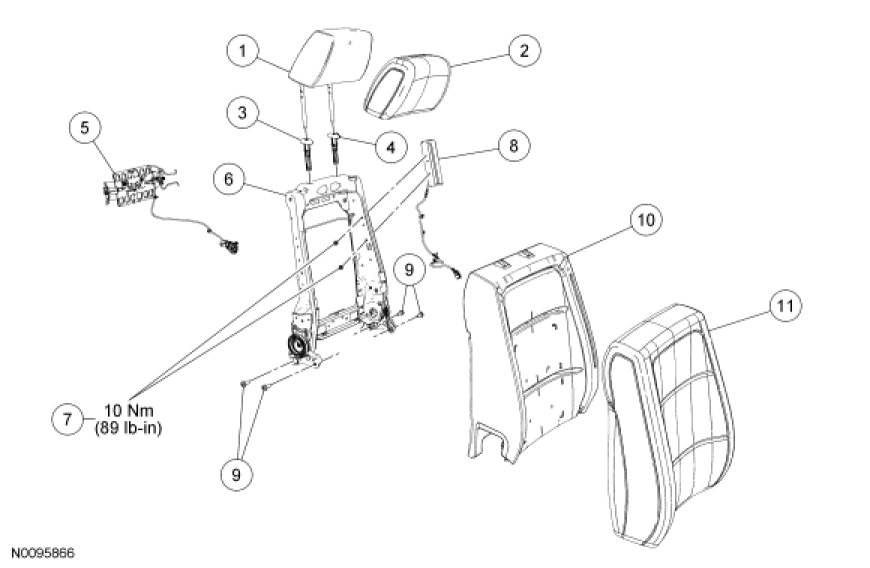 NOTE: Refer to Seat Backrest - Front, Without Fold Flat Seat Backrest - Front, Without Fold Flat for recliner-to-seat track bolt tightening sequence and torque specification.