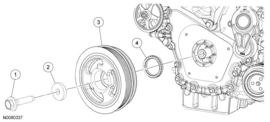 Lower End Components - Exploded View, Crankshaft Pulley and Crankshaft Front Seal