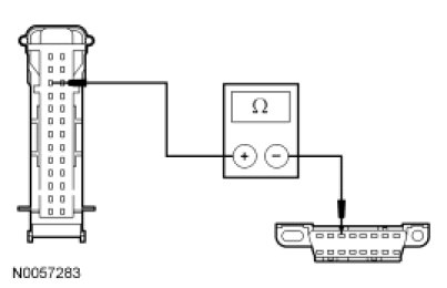 - Measure the resistance between the LTM C4174a-11, circuit VDB06 (GY/OG), harness side and the Data Link Connector (DLC) C251-3, circuit VDB06 (GY/OG), harness side.