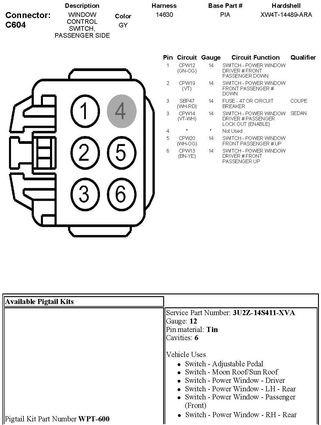 Window Control Switch, Passenger Side