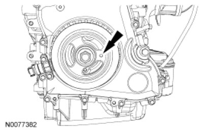 4. Turn the crankshaft clockwise until the hole in the crankshaft pulley is in the 3 o'clock position.