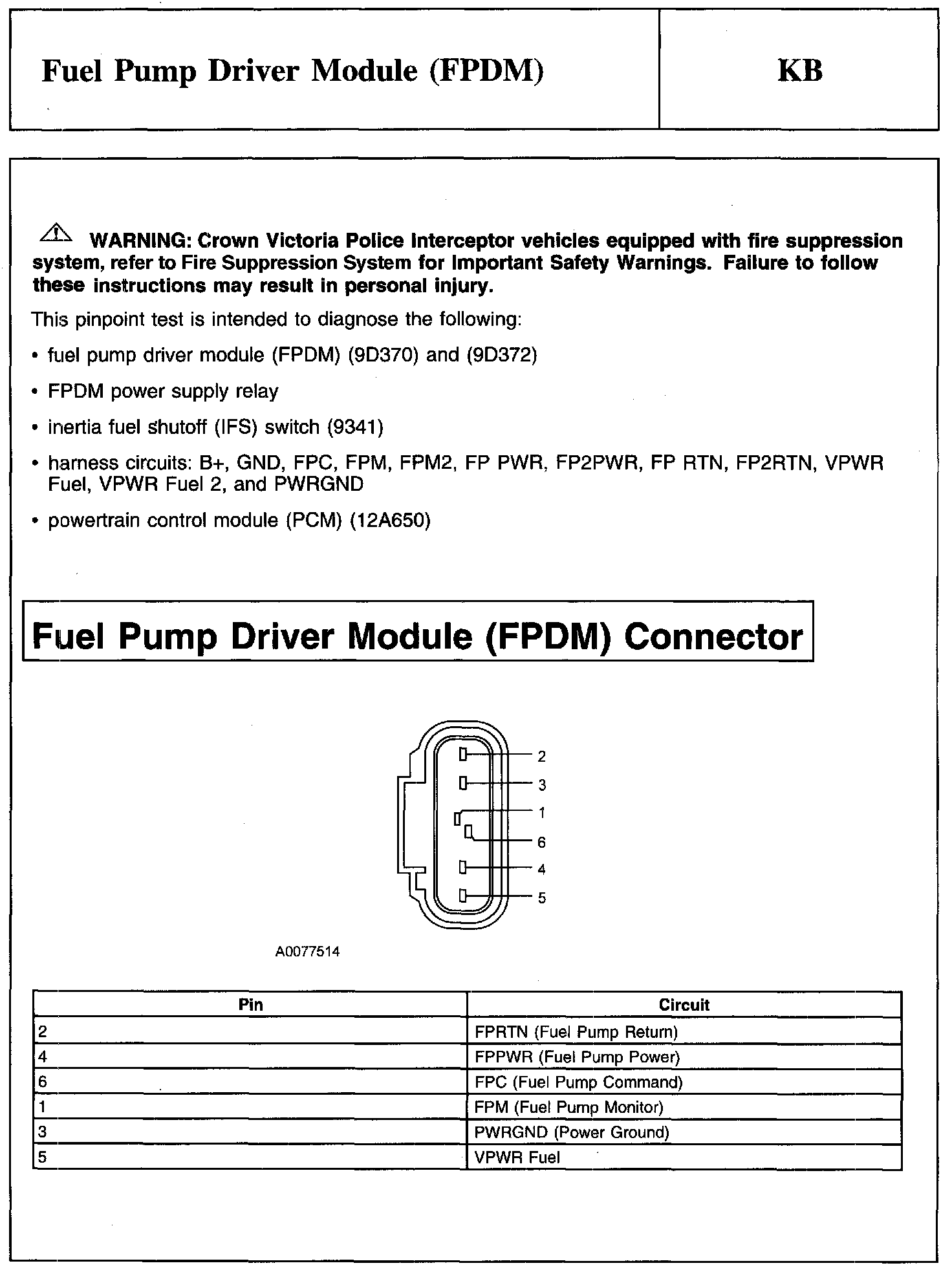 PINPOINT TEST KB: FUEL PUMP DRIVER MODULE (FPDM)