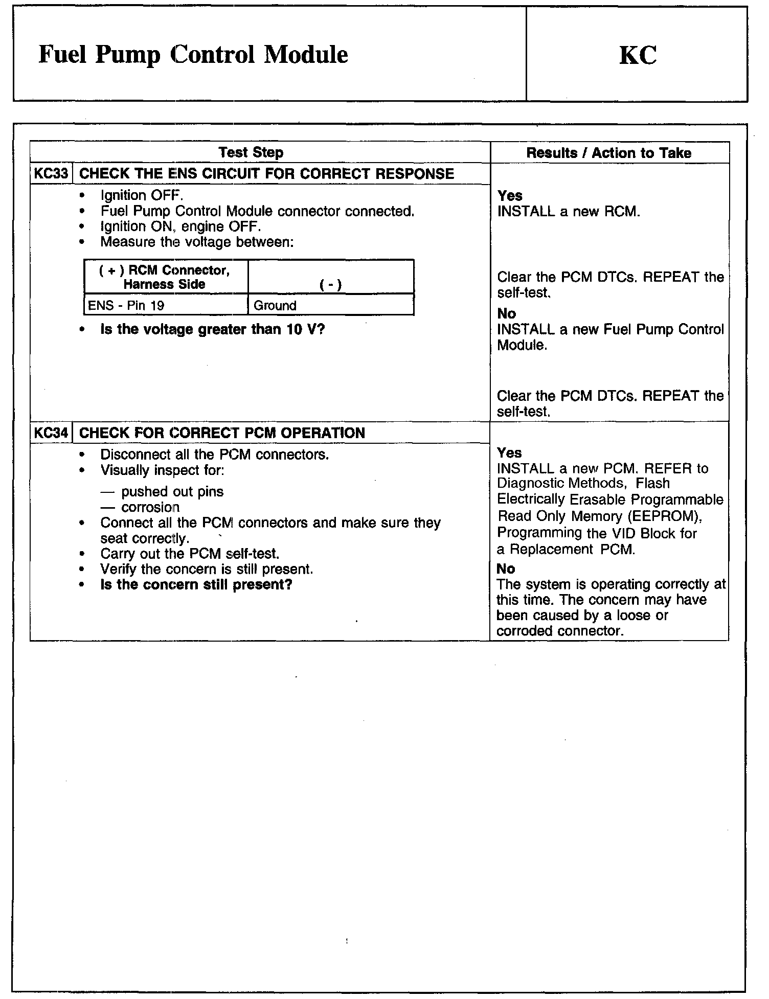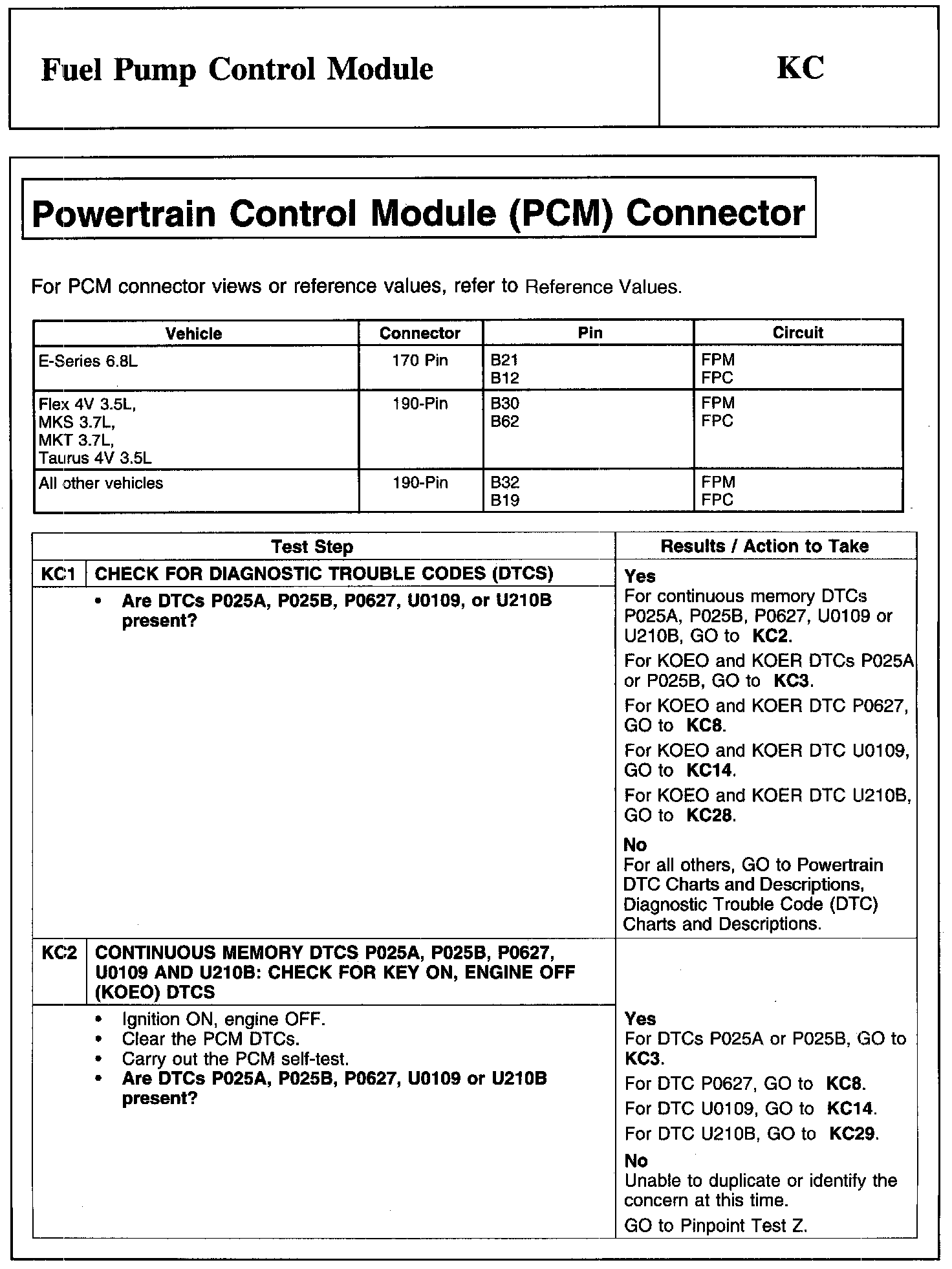 PINPOINT TEST KC: FUEL PUMP CONTROL MODULEFuel Pump Control Module Connector: