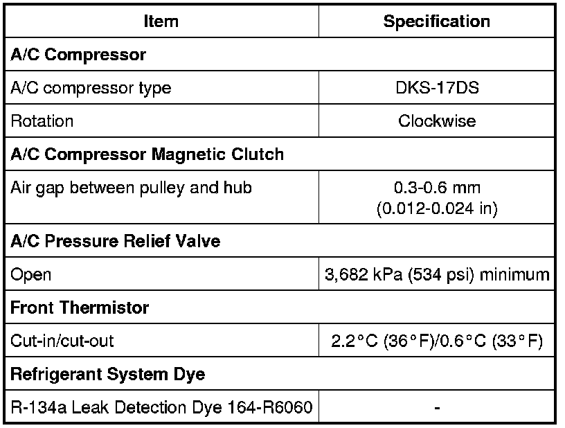 Home >> Ford >> 2010 >> Focus L4-2.0L >> Repair and Diagnosis >> Specifications >> Mechanical Specifications >> Heating and Air Conditioning >> Climate Control System >> General Specifications