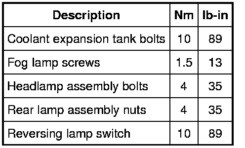 Torque Specifications