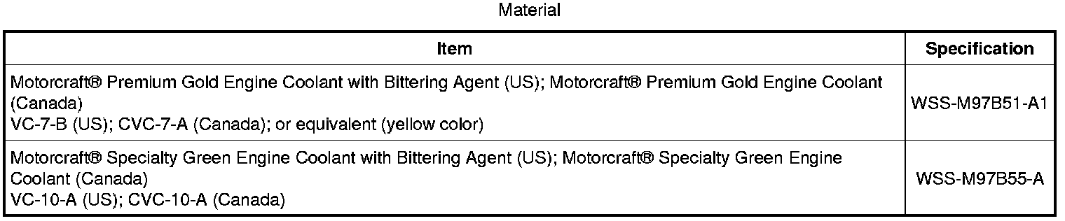 NOTICE: Early build vehicle (built before July 6, 2009) cooling systems are filled with Motorcraft(R) Premium Gold Engine Coolant. Late build vehicle (built on or after July 6, 2009) cooling systems are filled with Motorcraft(R) Specialty Green Engine Coolant. Mixing coolant types degrades the corrosion protection of the coolant. Do not mix coolant types. Failure to follow these instructions may result in engine or cooling system damage.