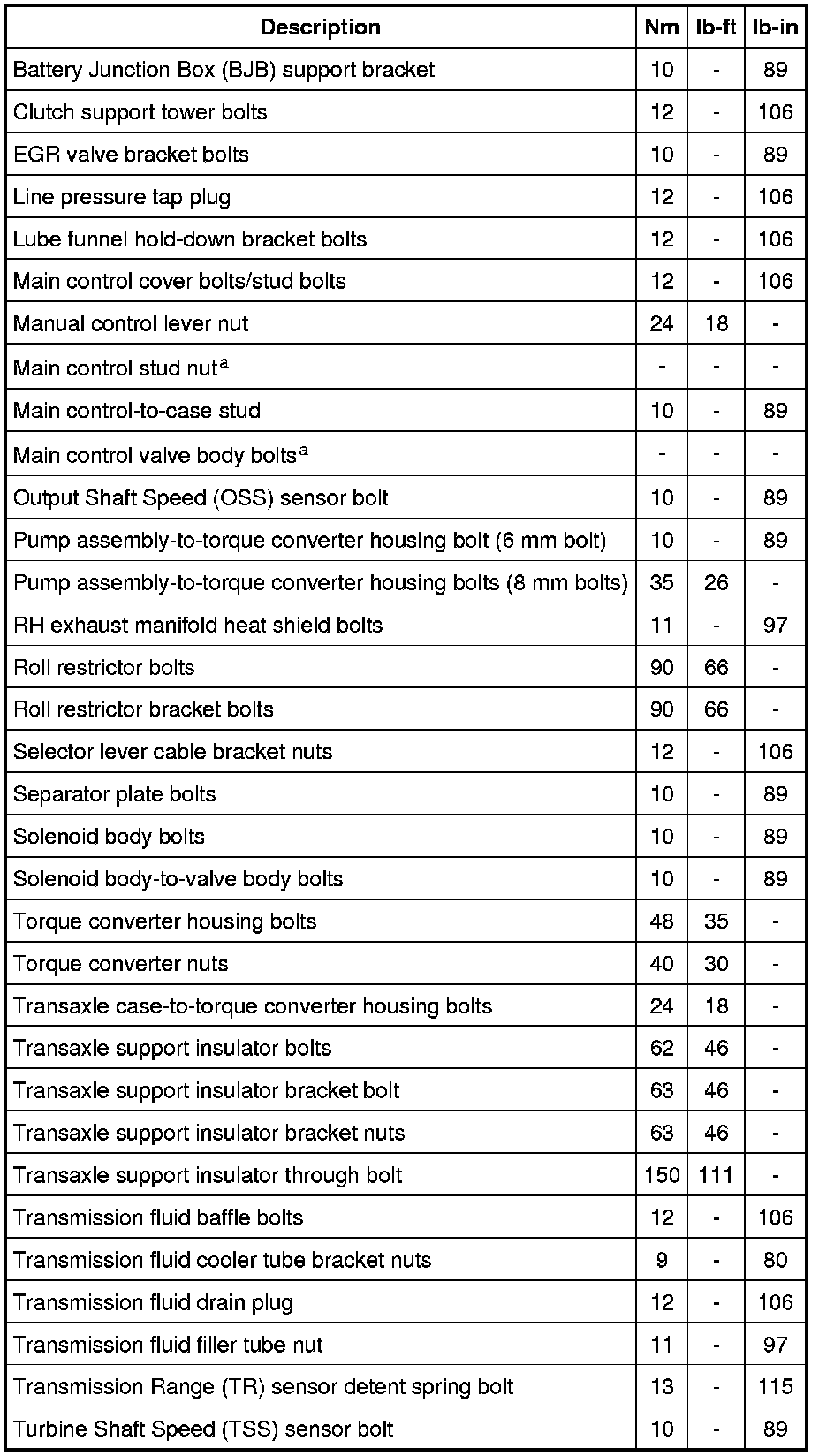 Torque Specifications