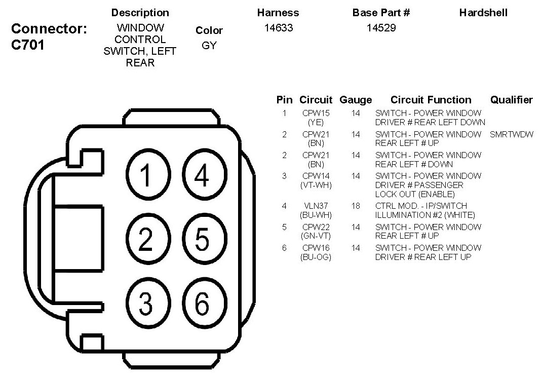 Window Control Switch, Left Rear