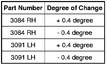 2. NOTE: The revised upper control arms have the same base part number, but they are identified by the amount of caster they change (for example: + 0.4 degrees or - 0.4 degrees).