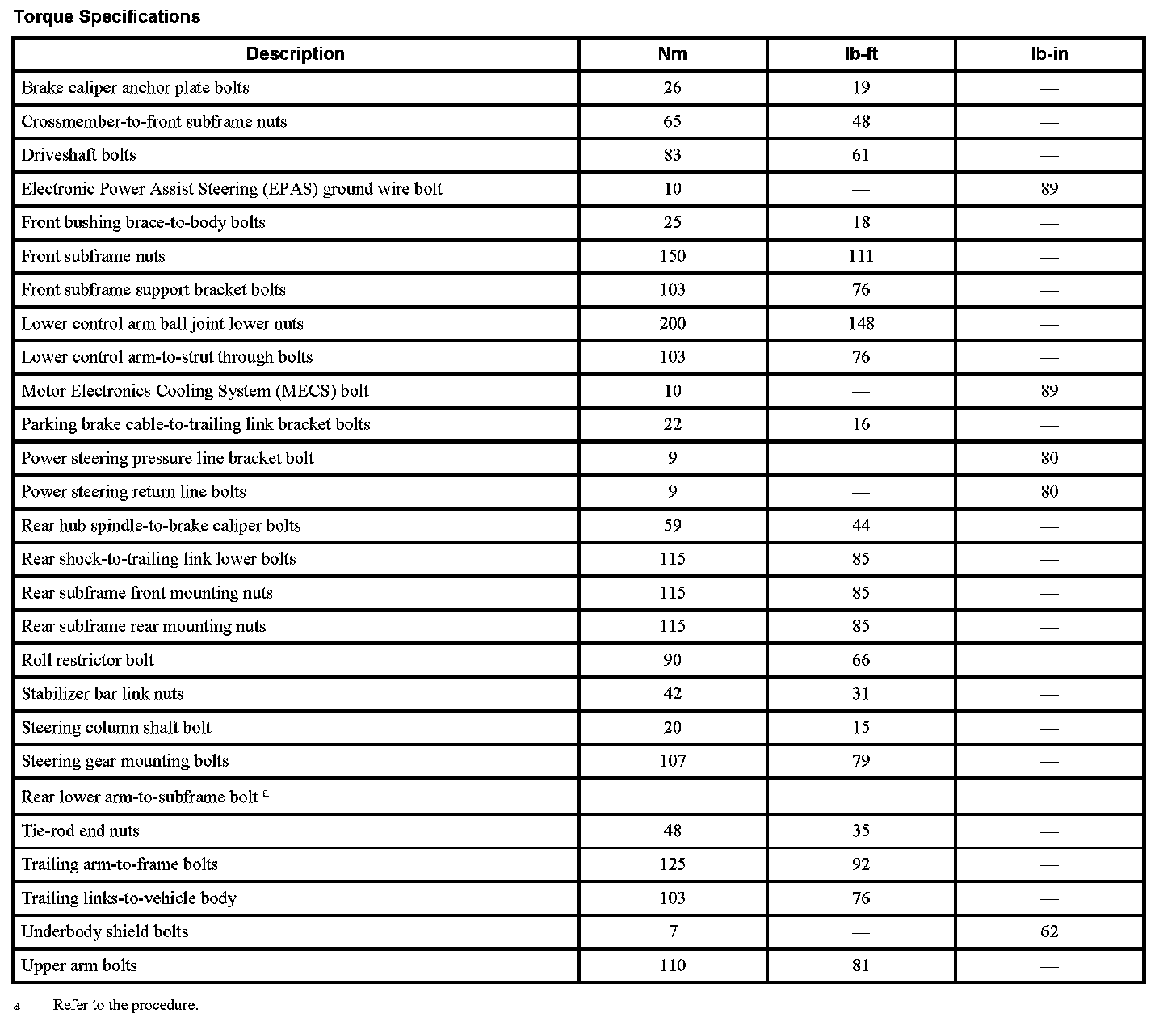 Torque Specifications: