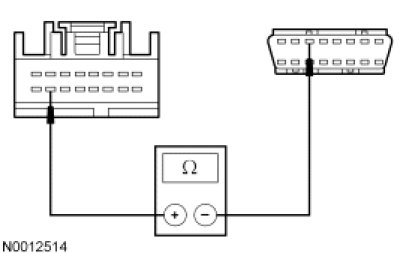 - Measure the resistance between the ACM C290a-16, circuit VDB07 (VT/OG), harness side and the DLC C251-11, circuit VDB07 (VT/OG), harness side.