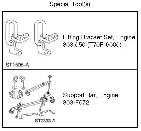 7. Using the Engine Lifting Bracket Set, raise and support the engine.