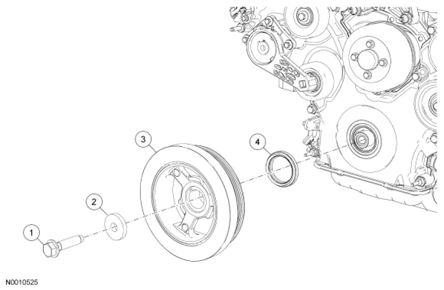 Lower End Components - Exploded View, Crankshaft Pulley and Crankshaft Front Seal