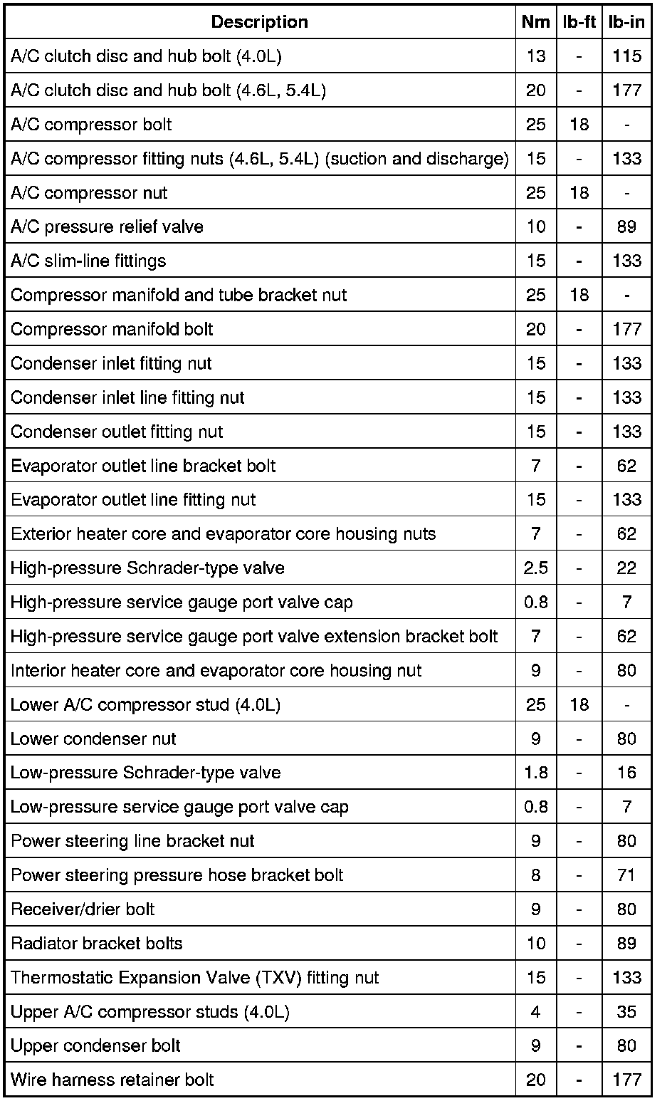 Torque Specifications