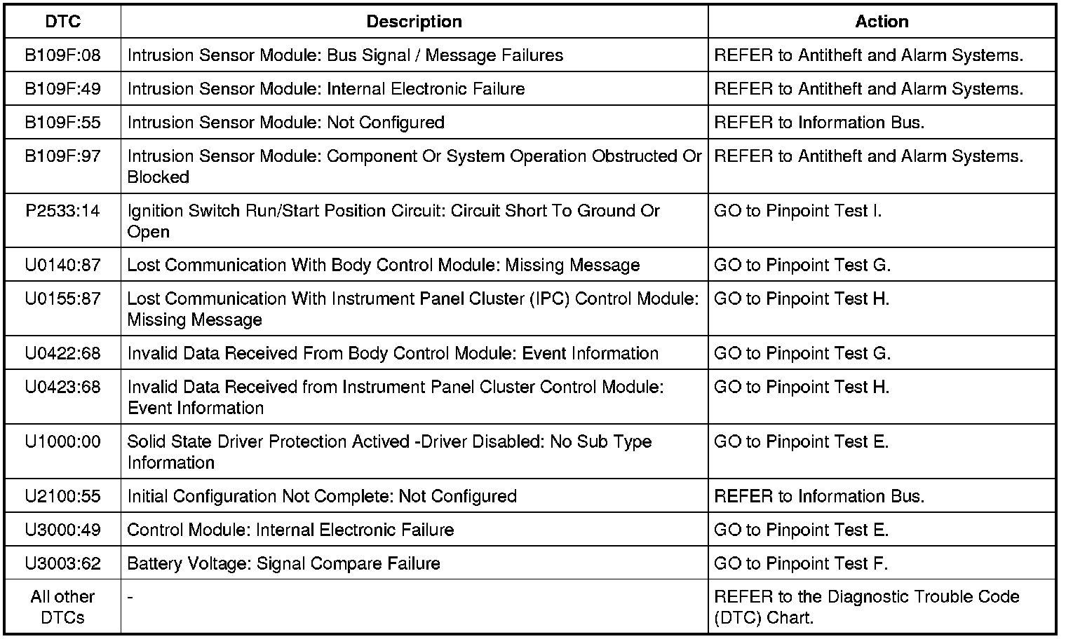 Body Control Module B (BCM-B) DTC Chart