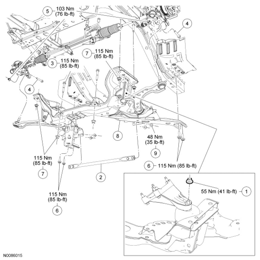 Subframe and Components - Exploded View, Front