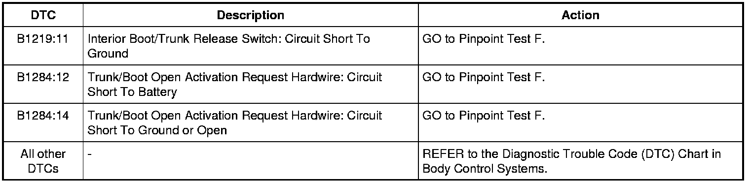 NOTE: This module utilizes a 5-character DTC followed by a 2-character failure-type code. The failure-type code provides information about specific fault conditions such as opens, or shorts to ground. Continuous memory DTCs have an additional 2-character DTC status code suffix to assist in determining DTC history.