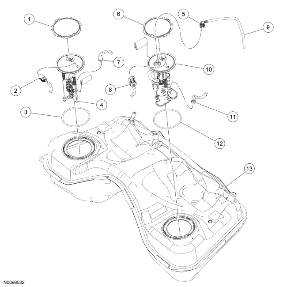 Fuel Tank and Filler Pipe - Exploded View