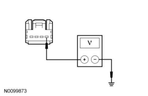 - Measure the voltage between the FCIM C2402-1, circuit SBP14 (BN/RD), harness side and ground.