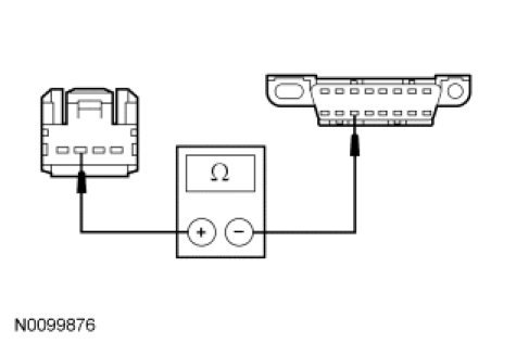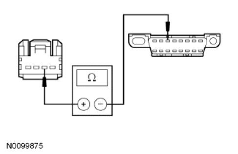 - Measure the resistance between the FCIM C2402-3, circuit VDB07 (VT/OG), harness side and the DLC C251-11, circuit VDB07 (VT/OG), harness side.