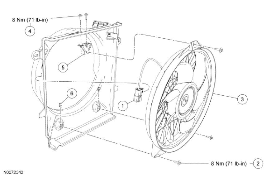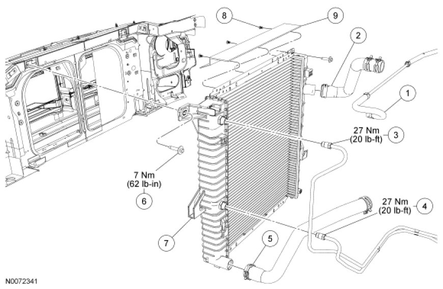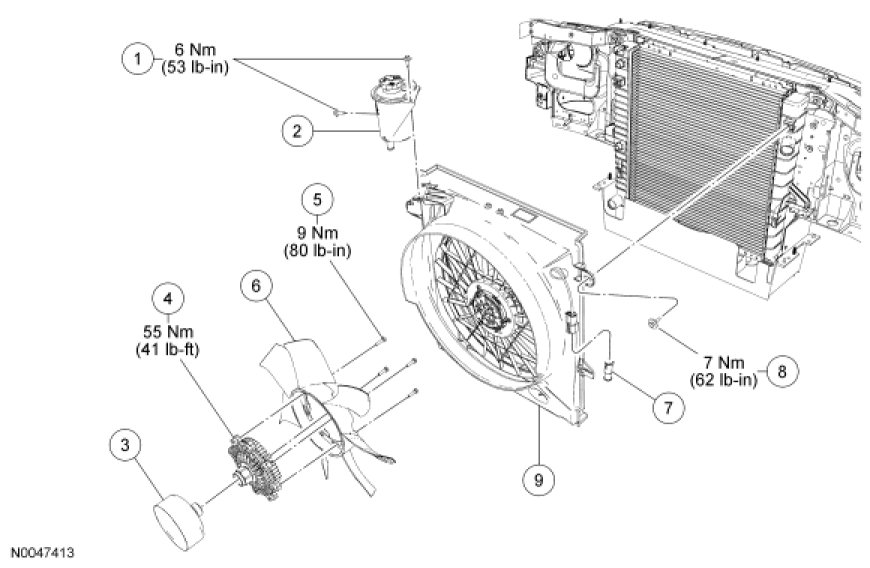 Radiator and Cooling Fan - Exploded View, 2.3L