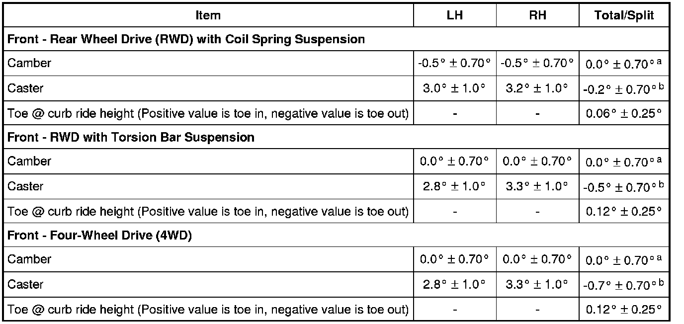 a Camber Total/Split = LH Camber - RH Camber