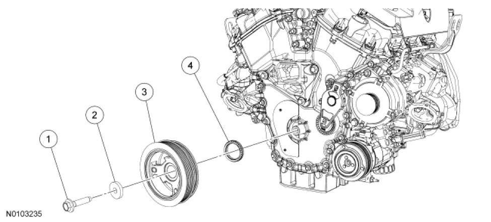 Lower End Components - Exploded View, Crankshaft Pulley and Crankshaft Front Seal