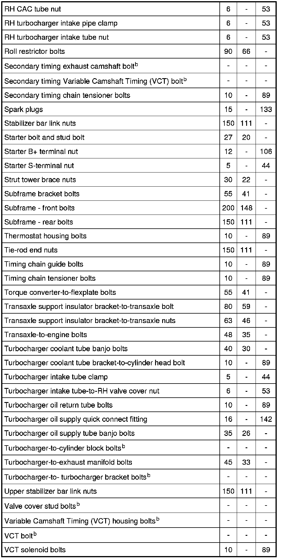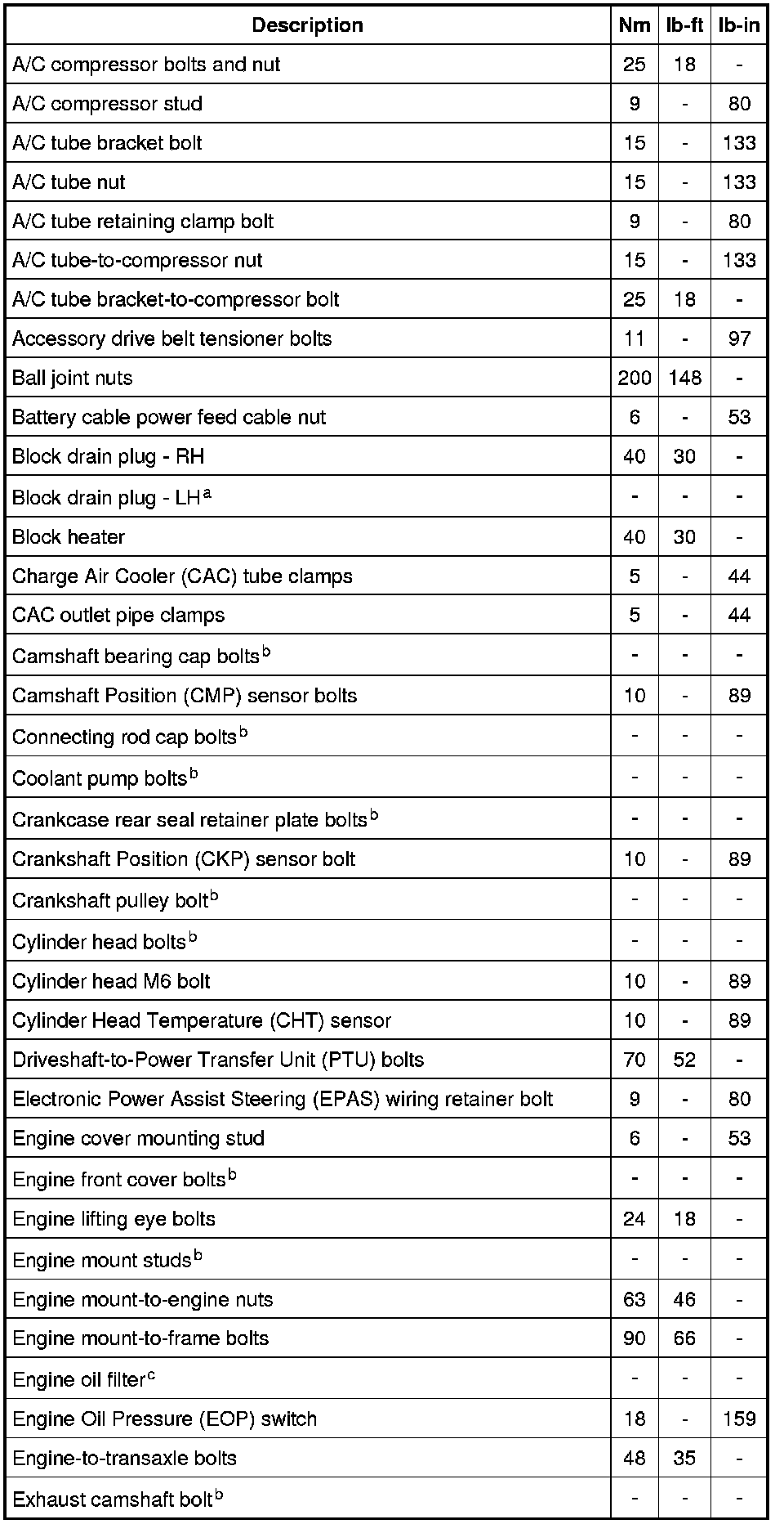 Torque Specifications