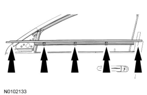 3. Release the tabs, then lift up and remove the exterior window glass moulding.