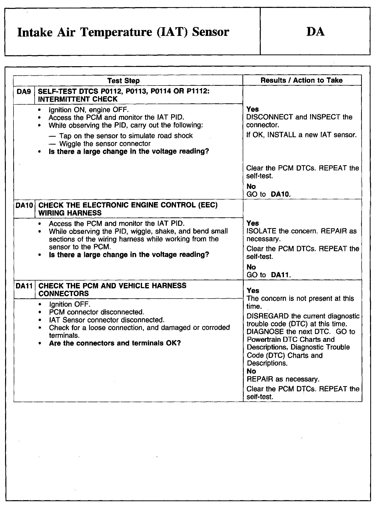 Test DA: Intake Air Temperature (IAT) Sensor